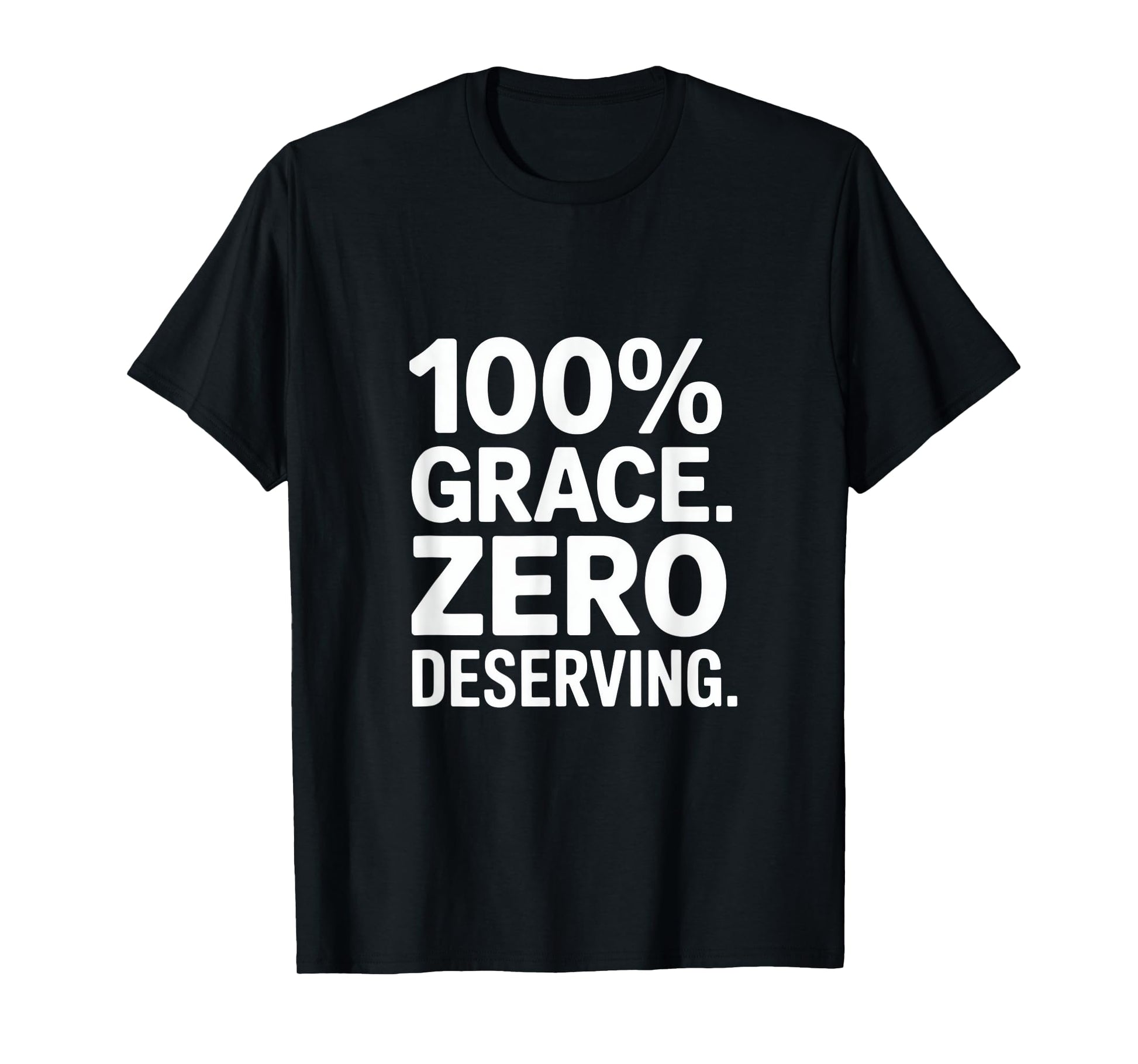 100% Grace Zero Deserving Christian Message Backprint T-Shirt