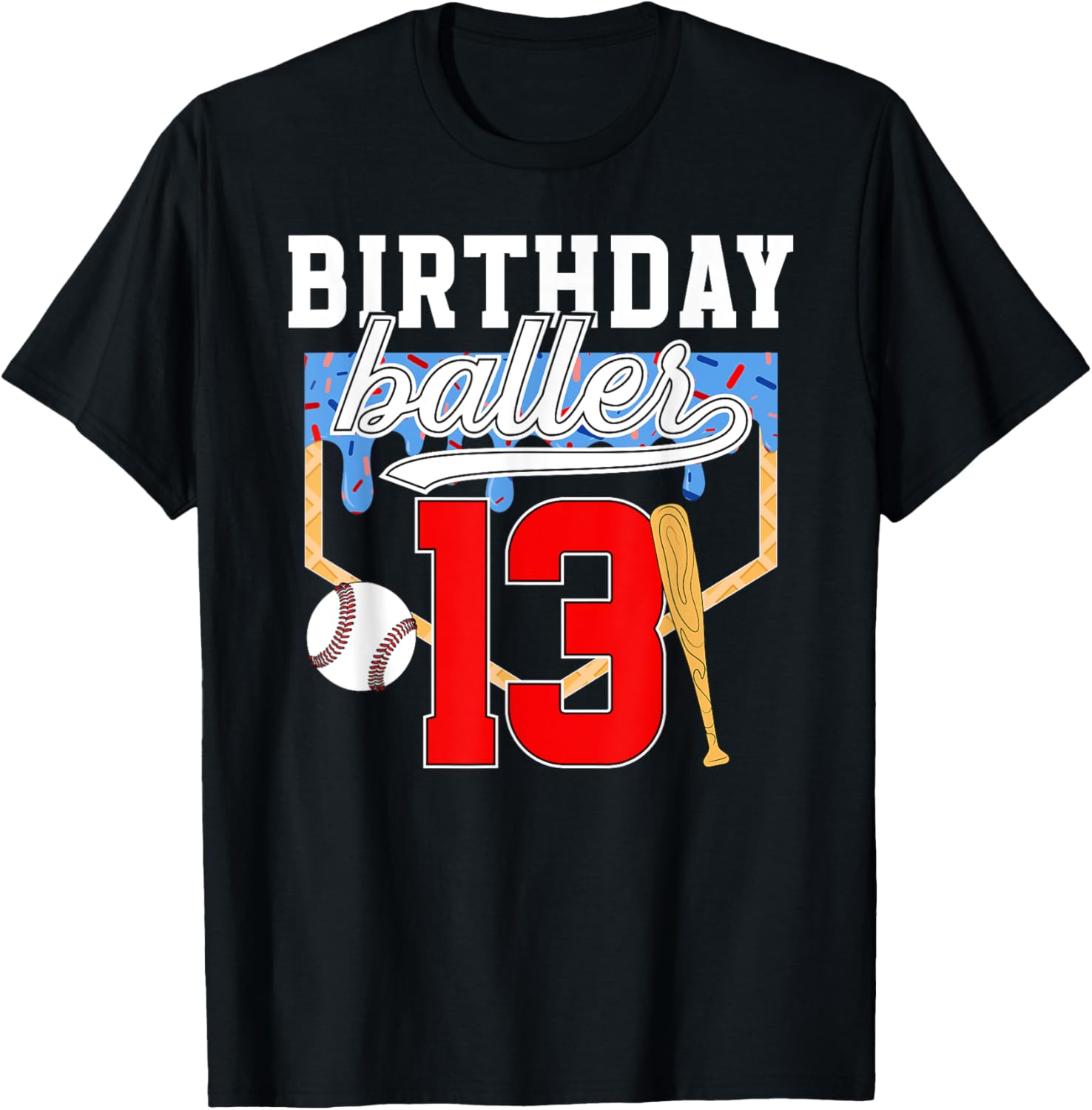 13th Baseball Birthday 13 Year Old Baseball Player Drip T-Shirt
