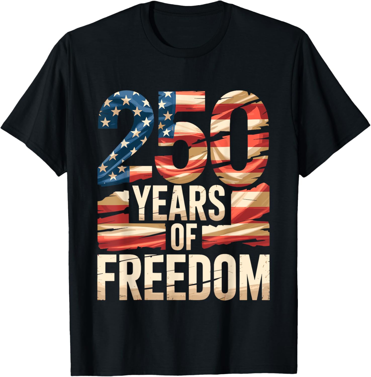 250 Years of Freedom Patriotic USA American Flag Style T-Shirt