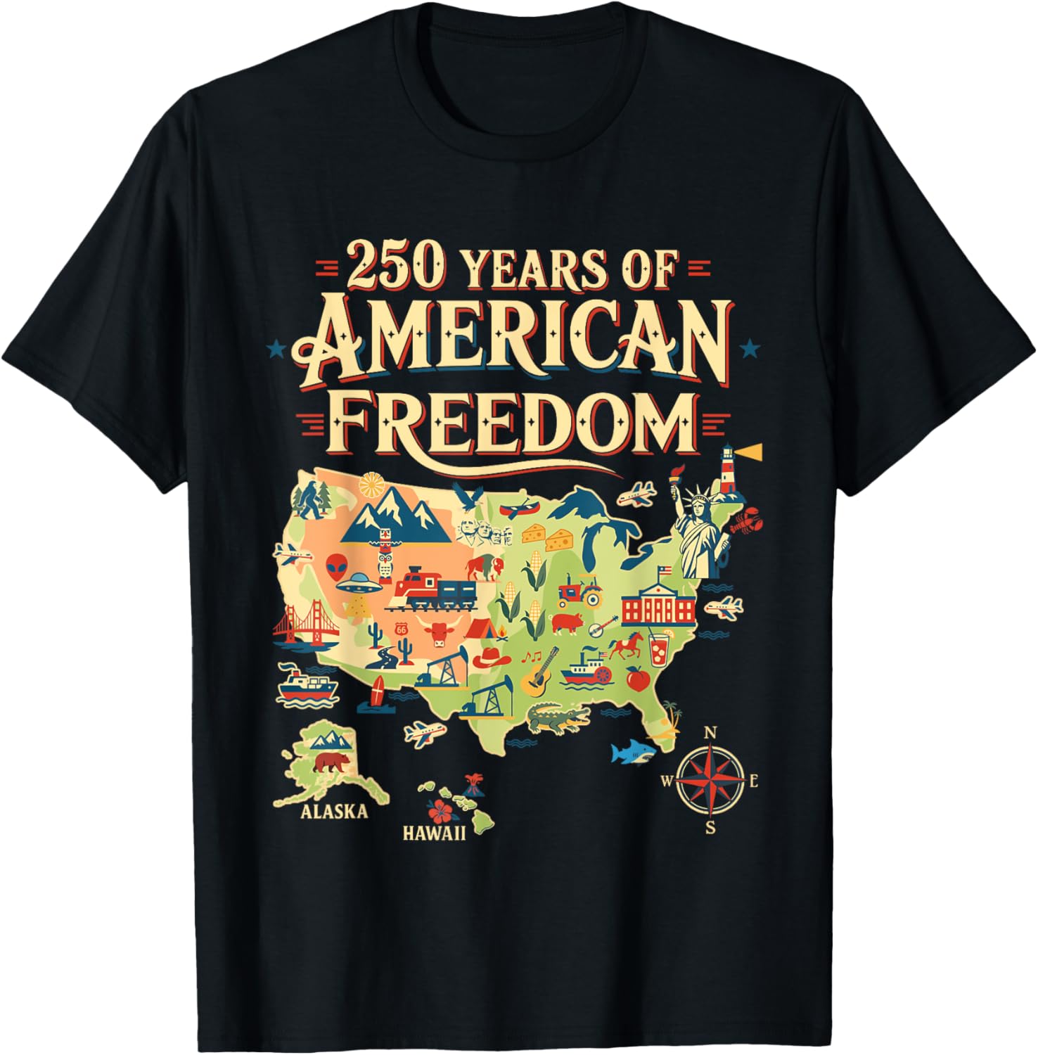 250 Years United States Map Patriotic Art for Freedom Lovers T-Shirt