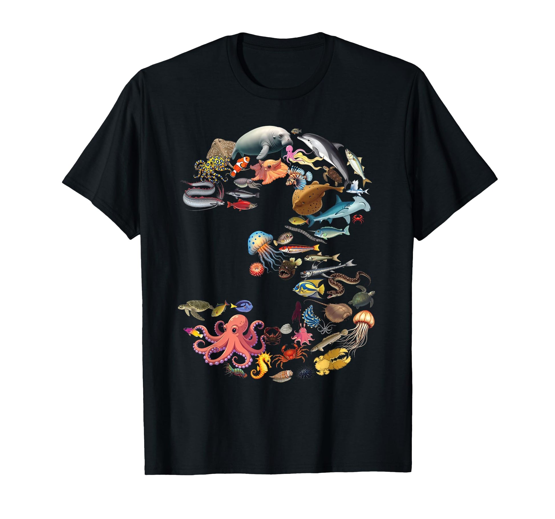3 Years Old 3rd Birthday Sea Ocean Animals Figures Number 3 T-Shirt