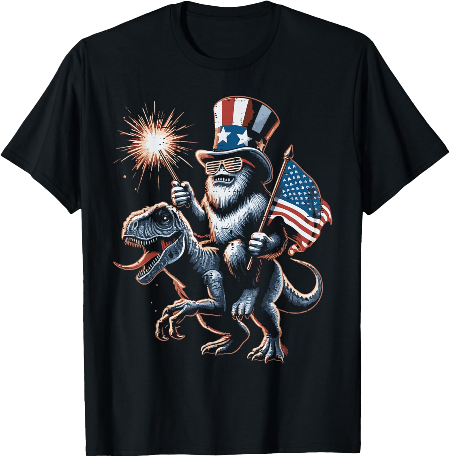 4th Of July Bigfoot Dino Trex American Boys Kids Youth T-Shirt