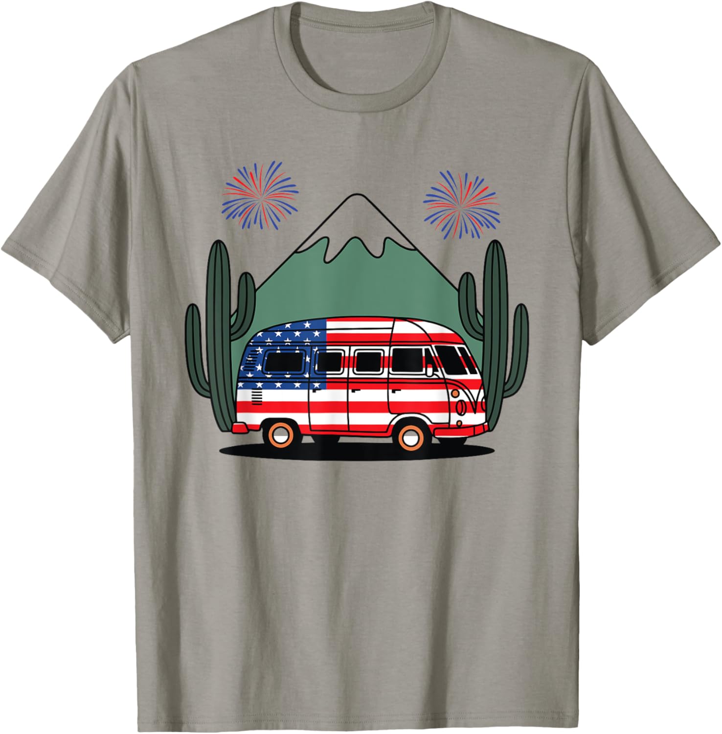 4th July Camper Van Us Flag Patriotic Camping Women Kids Men T-shirt