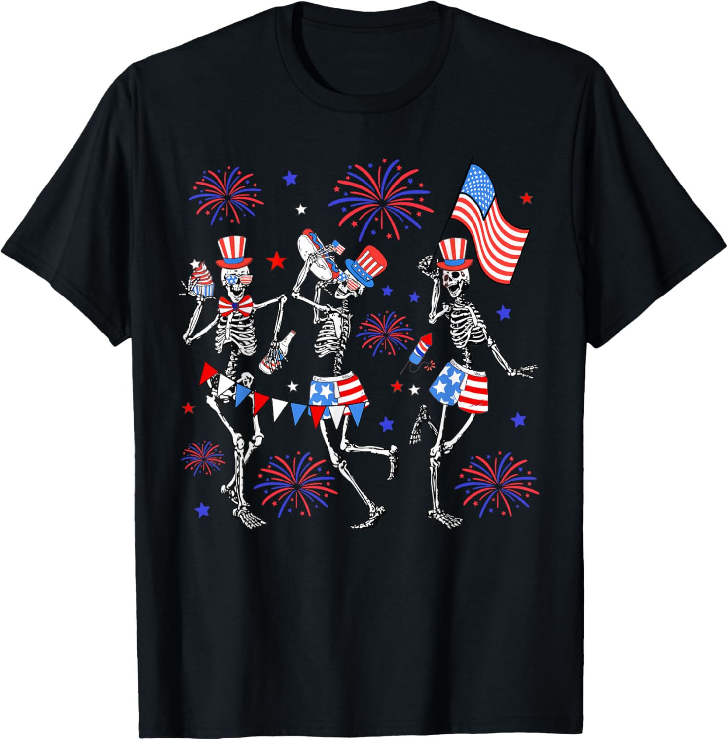 4th Of July Dancing Skeletons Funny Patriotic Men Women Kids T-shirt