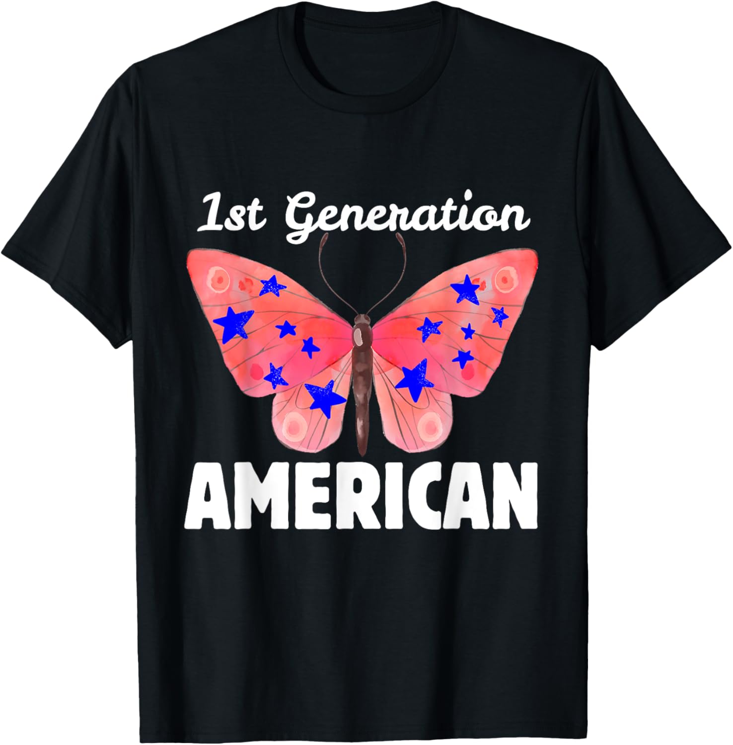 4th Of July Patriotic 1st Generation American Flag Butterfly T-shirt