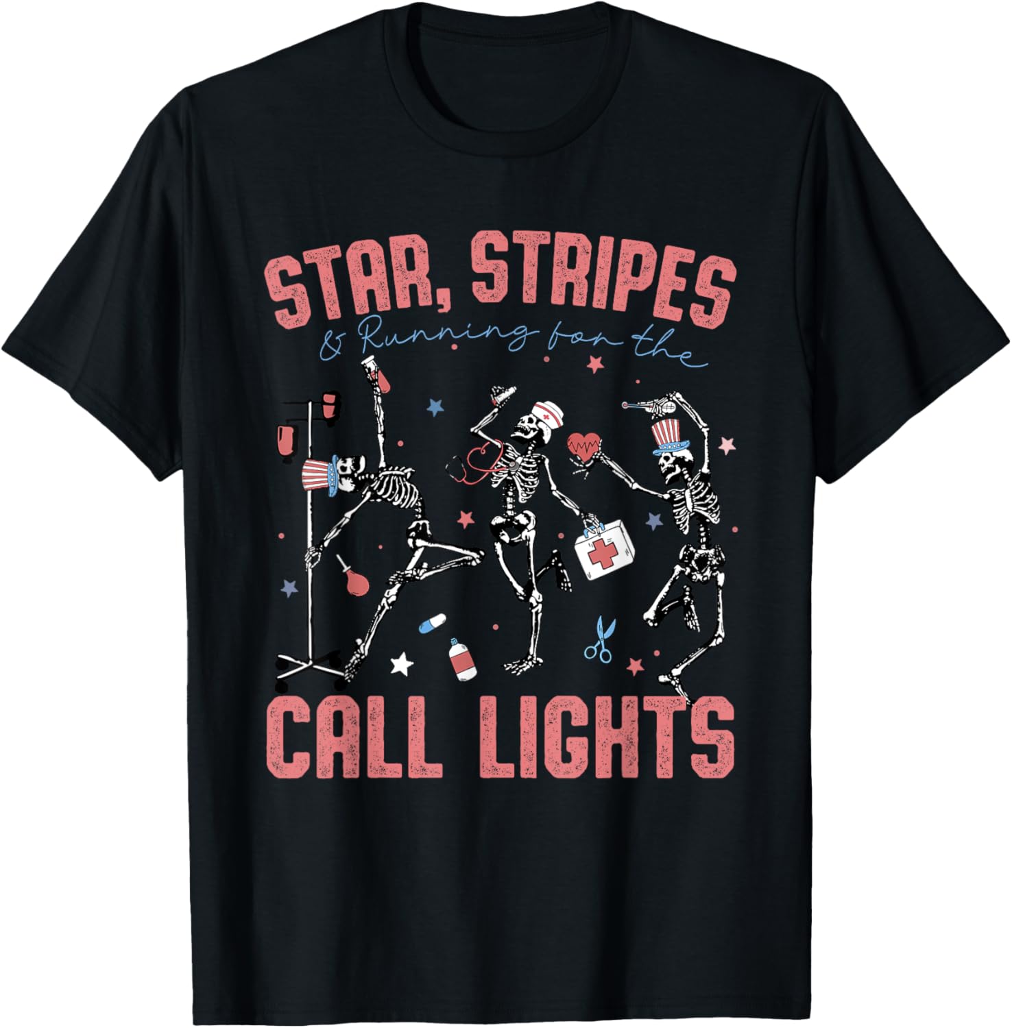 4th Of July Skeletons Dance Star Stripes And Call Lights T-shirt
