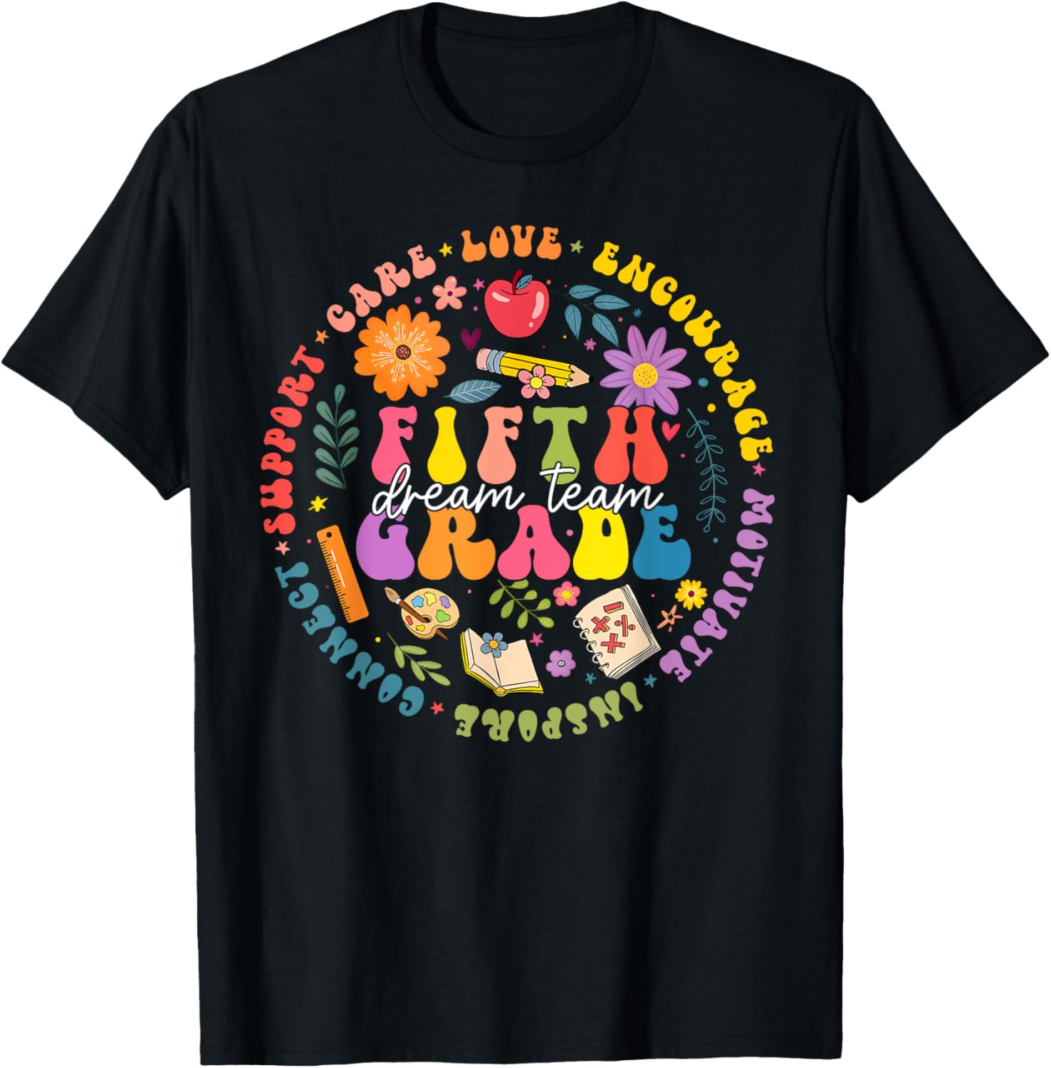 5th Grade Dream Team Back To School Teacher Floral Design T-shirt by TeeBrew