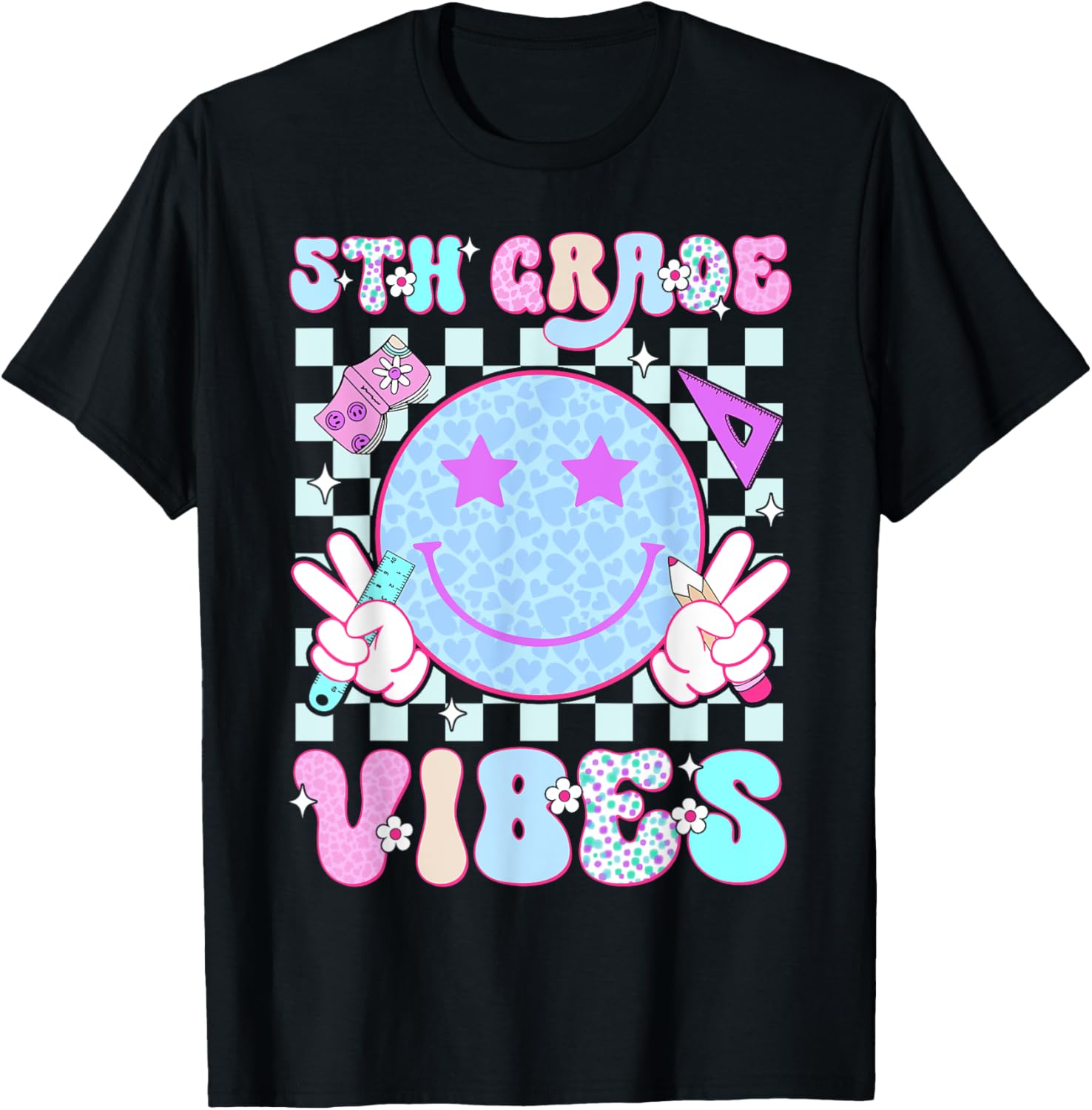 5th Fifth Grade Vibes Smile Face Back To School Teacher Girl T-shirt by TeeBrew