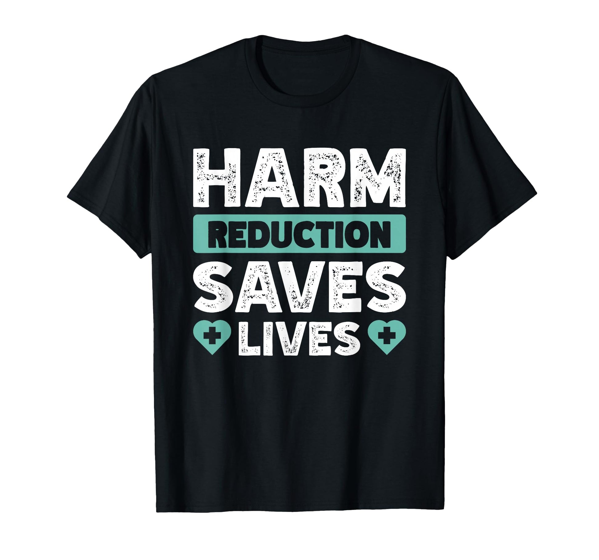 Addiction Recovery Harm Reduction Healthcare Unisex-Adults Black Small Harm Reduction Saves Lives T-Shirt