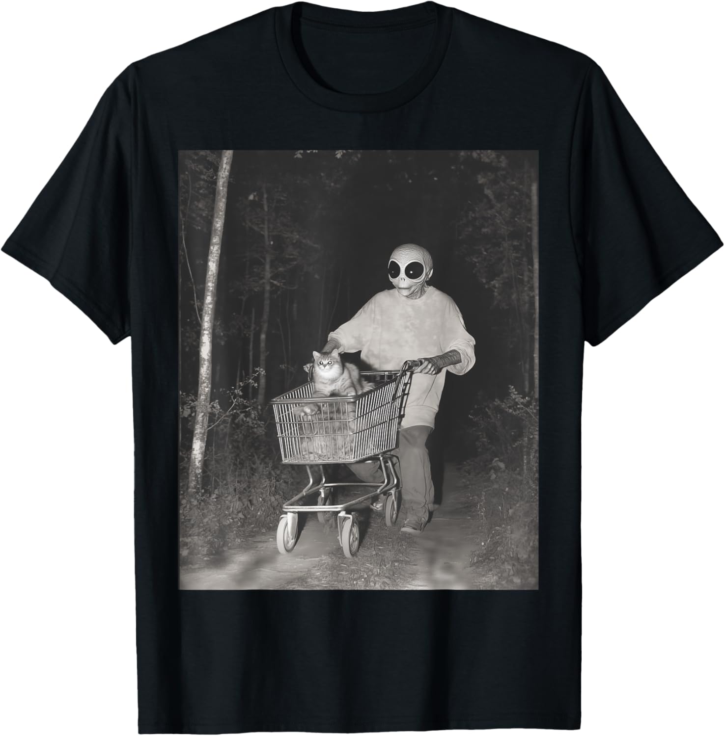 Alien Night Running – Funny Cat Abduction Parody Design T-Shirt