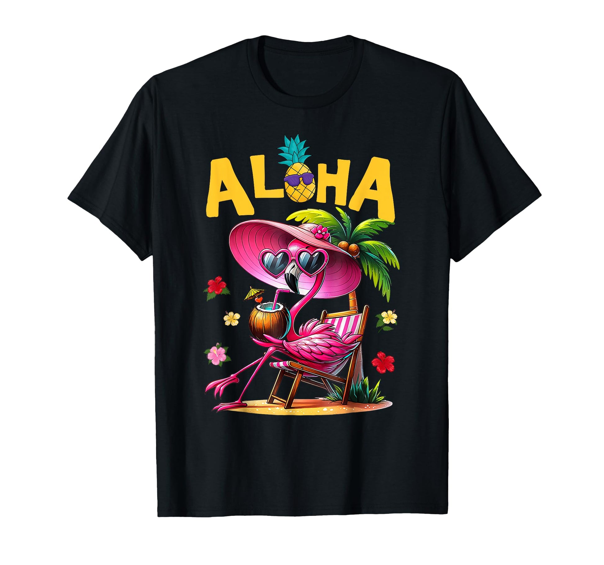 Aloha Flamingo Summer Vibes Beach Palm Tree Summer Vacation T-Shirt