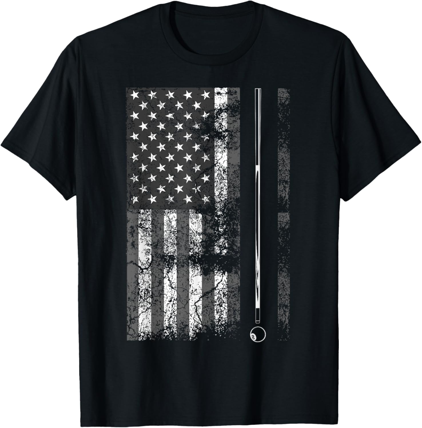 American Flag Billiard Stick Cute Table Game Funny USA Gift T-Shirt