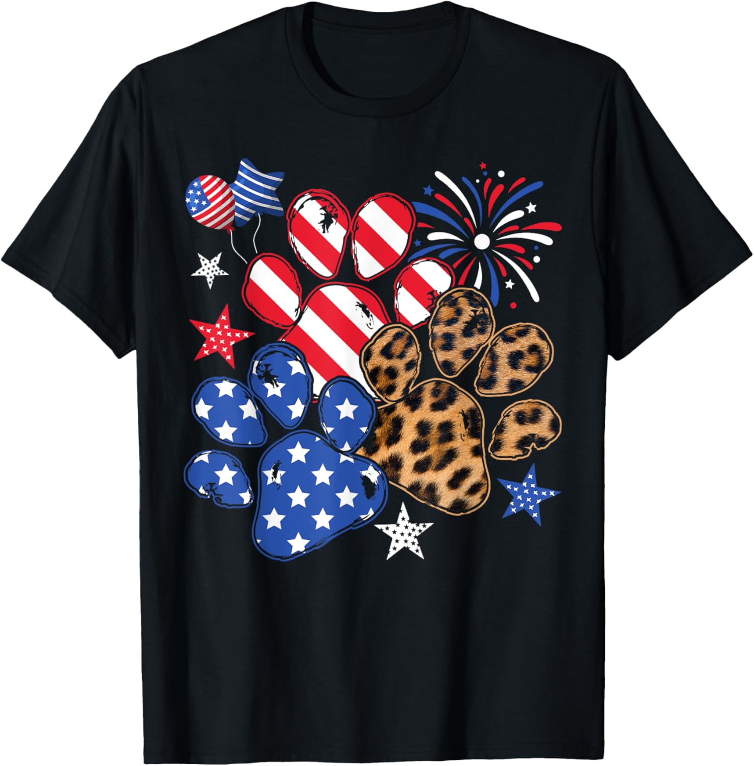 American Flag Patriotic Dog & Cat Paw Print - 4th of July T-Shirt