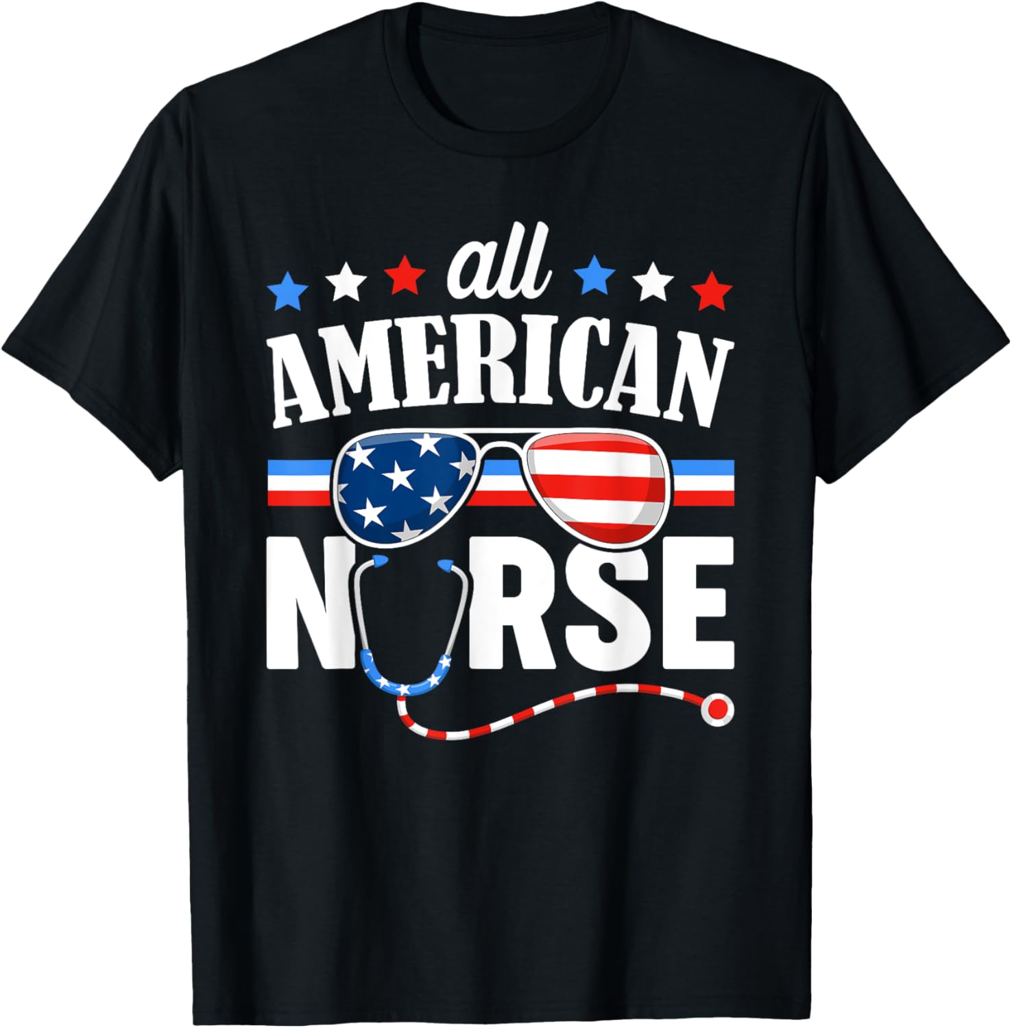 All American Nurse 4th of July Patriotic USA Flag Nursing T-Shirt