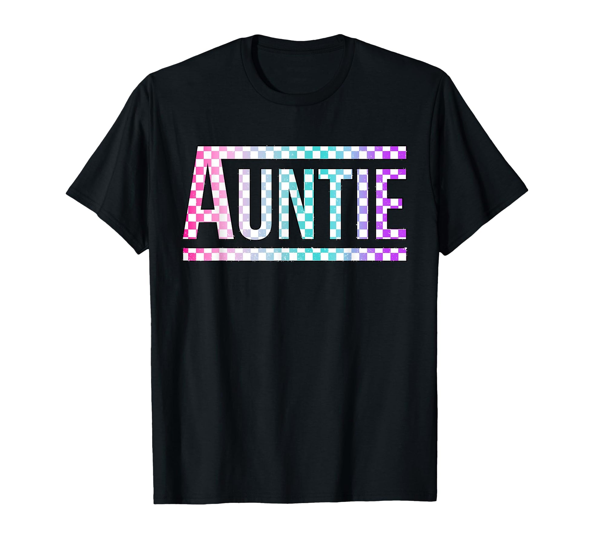 Auntie Checkered Tie Dye Family Mother's Day Pit Crew Women T-Shirt
