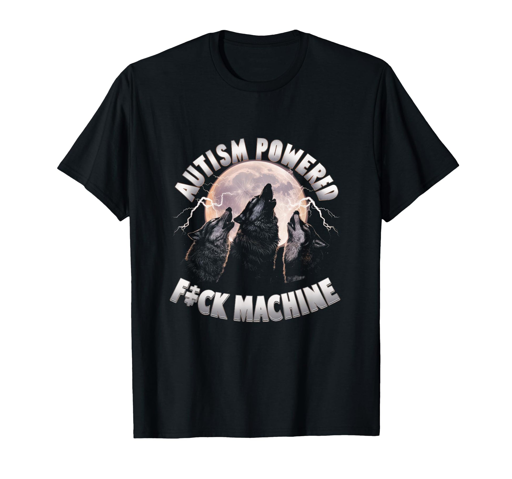 Autism Powered F ck Machine Funny Meme Wolf Autistic Retro T-Shirt