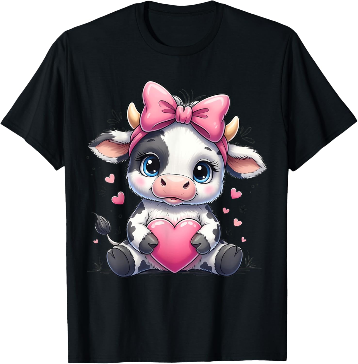 Awesome Cute Cow Holding Heart Pink Funny Cow Farmer T-Shirt