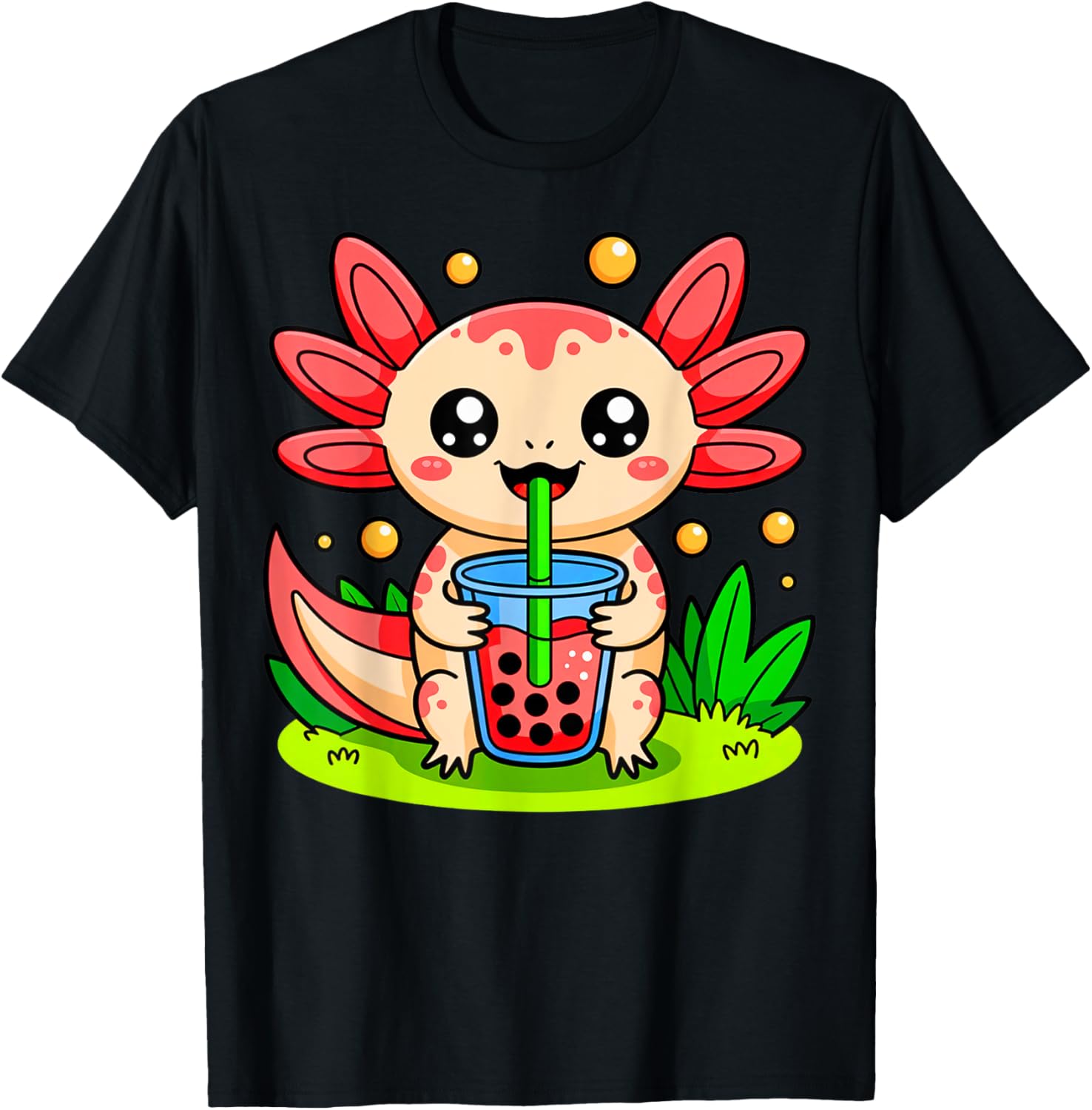 Axolotl Drinking Boba Tea Anime Cute Kawaii Funny Bubble Tea T-Shirt