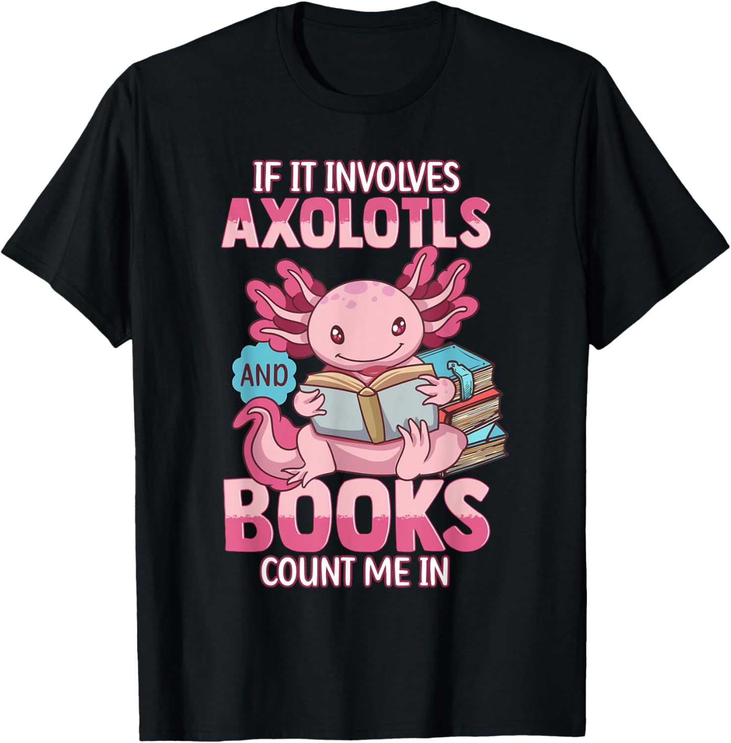 Axolotl Shirts For Girls Women Cute Funny Axolotl And Books T-Shirt