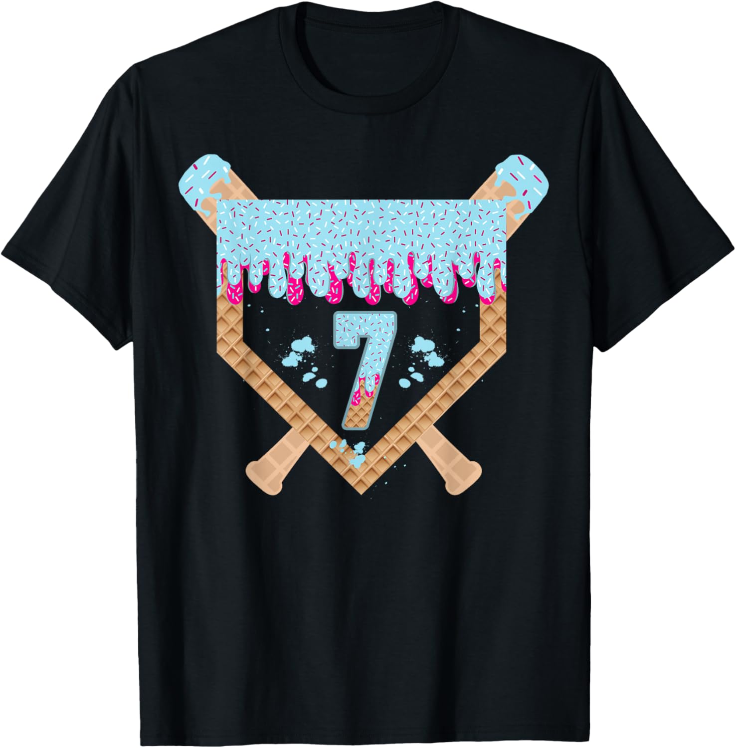 Baseball 7 Year Old Ice Cream Drip 7th Birthday Boy 7 T-Shirt