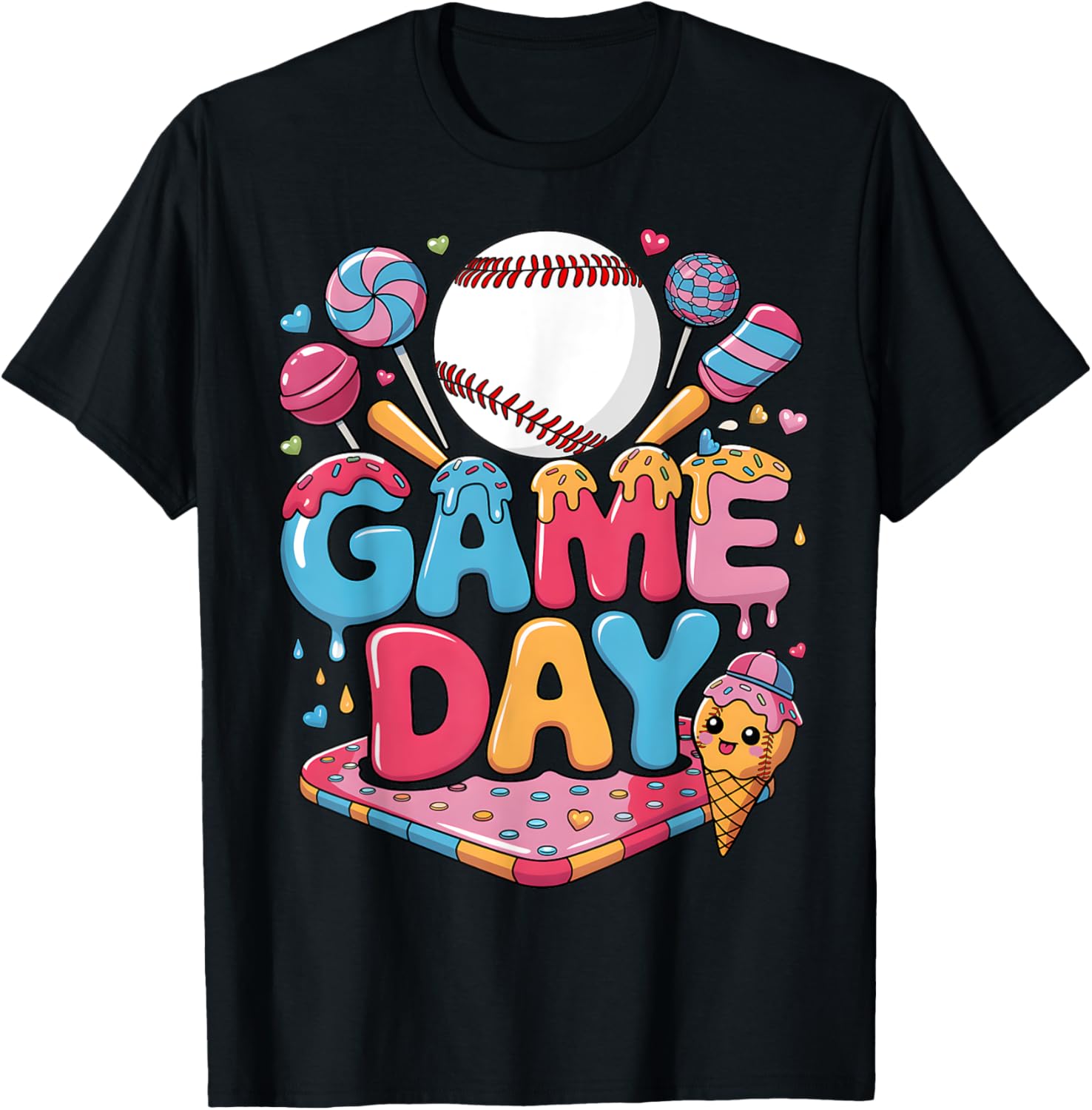 Baseball Game Day Ice Cream Dripping Baseball Drip Boy Youth T-Shirt