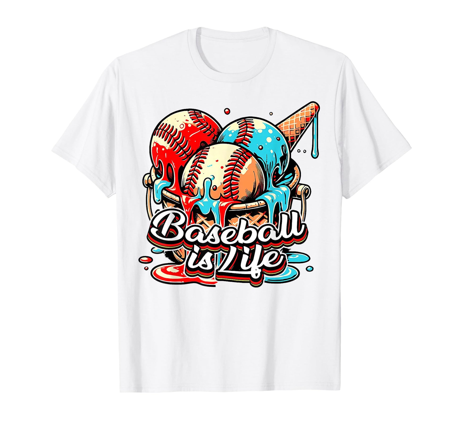 Baseball is Life Ice Cream Cone Drip Boys Youth Kids T-Shirt