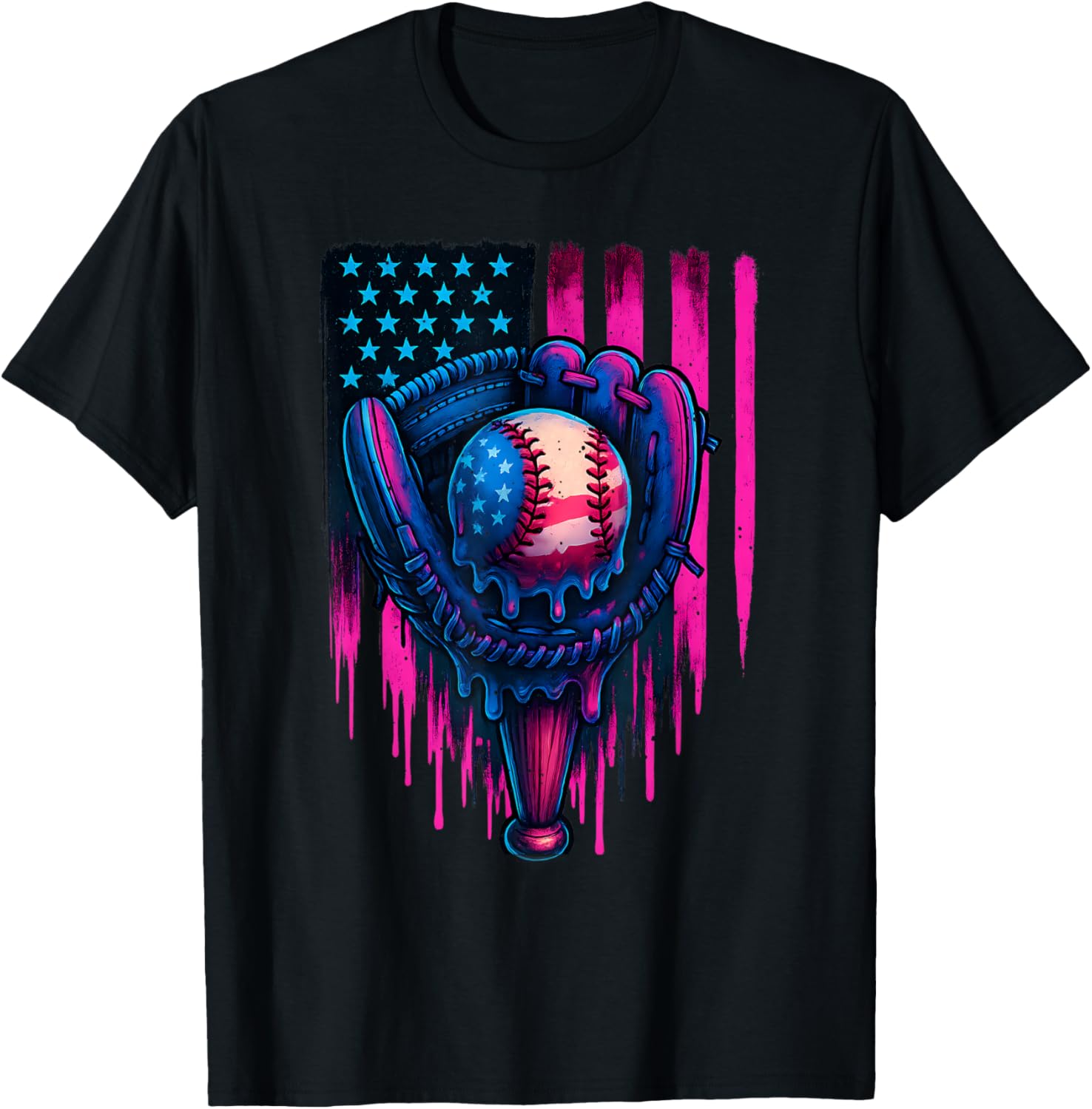 Baseball Player Drip Ice Cream Boys 4th Of July Patriotic T-shirt