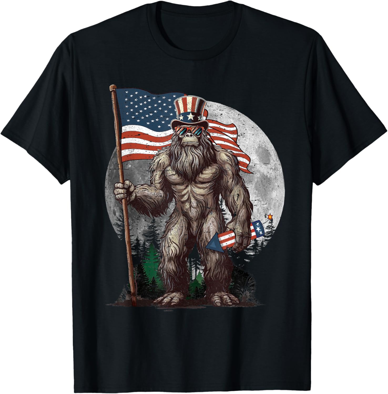 Bigfoot 4th Of July Shirts Men Sasquatch Usa American Flag T-shirt