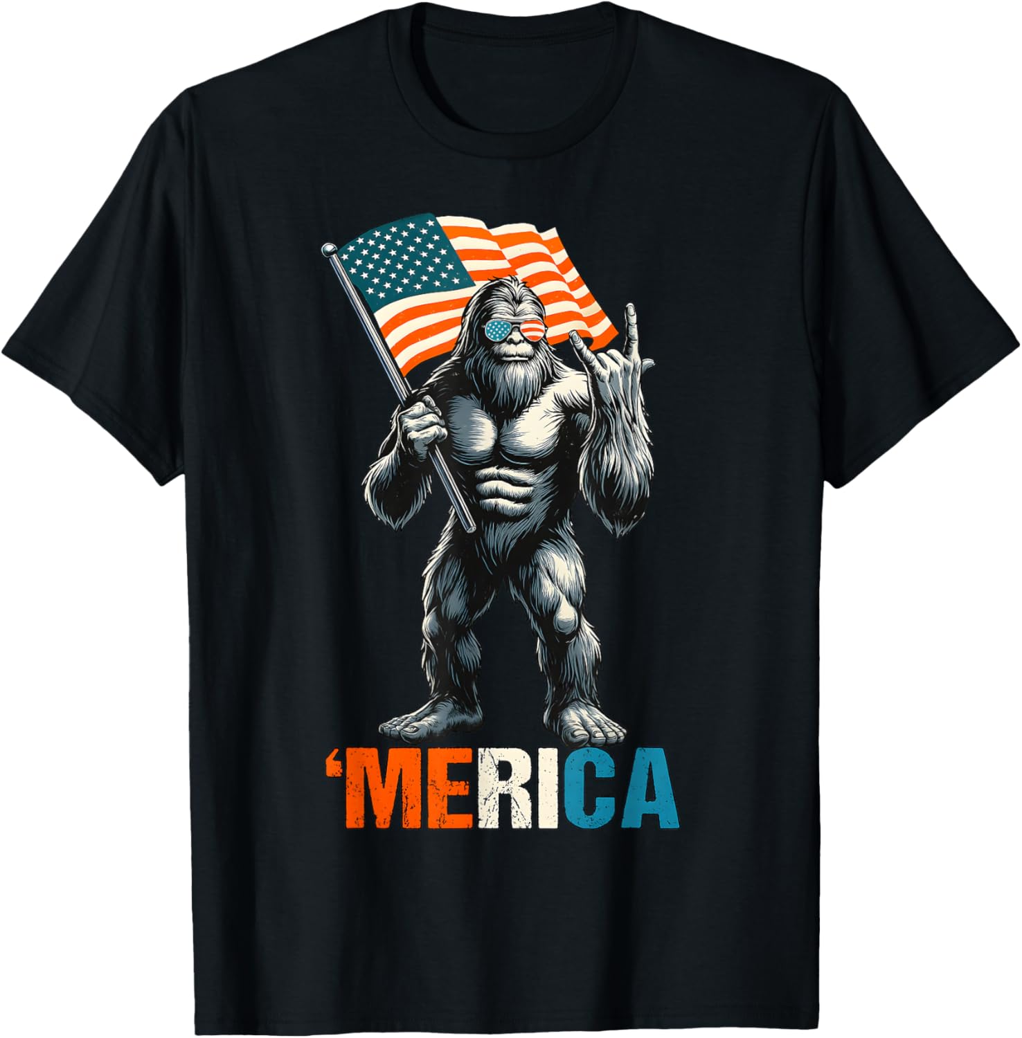 Bigfoot Merica Rock American Flag Patriotic Usa 4th Of July T-shirt