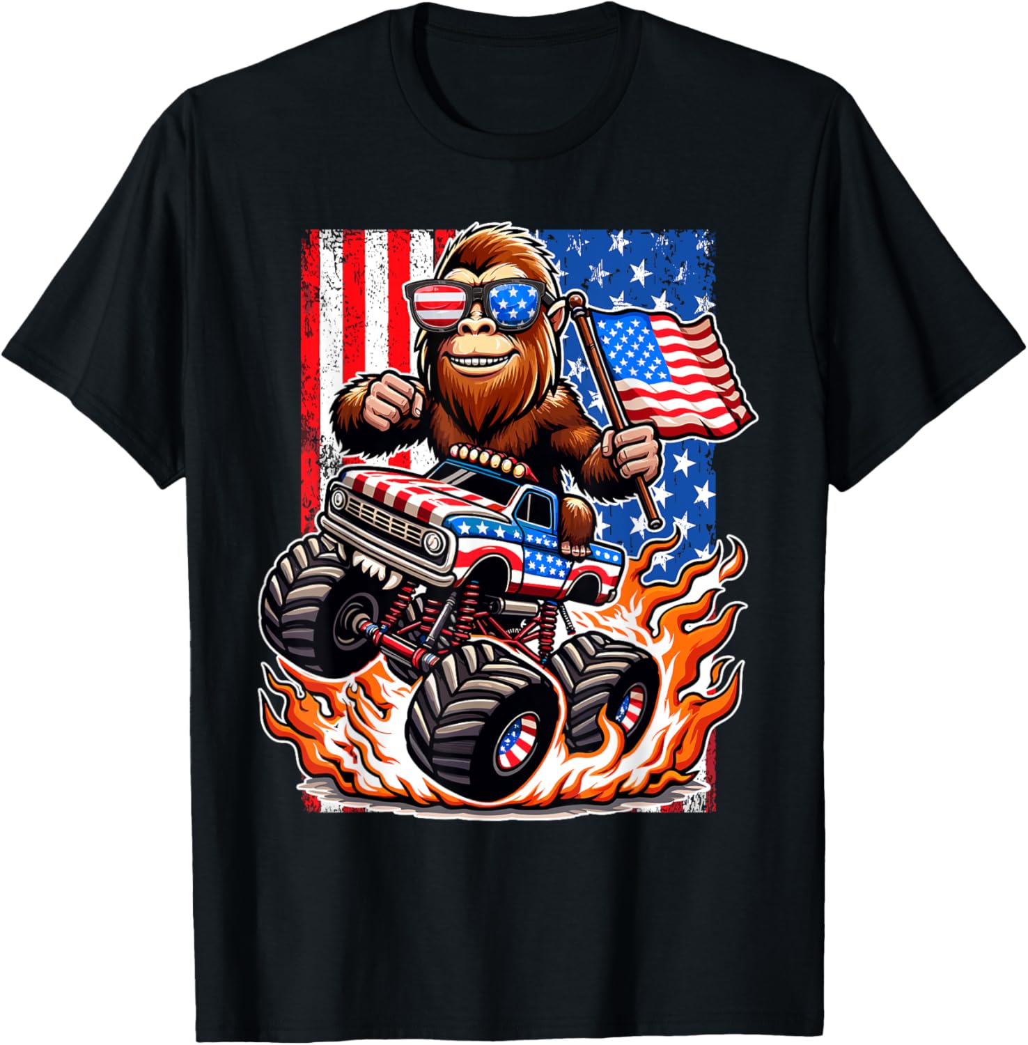 Bigfoot Monster Truck 4th Of July Funny Patriotic Usa Flag T-shirt