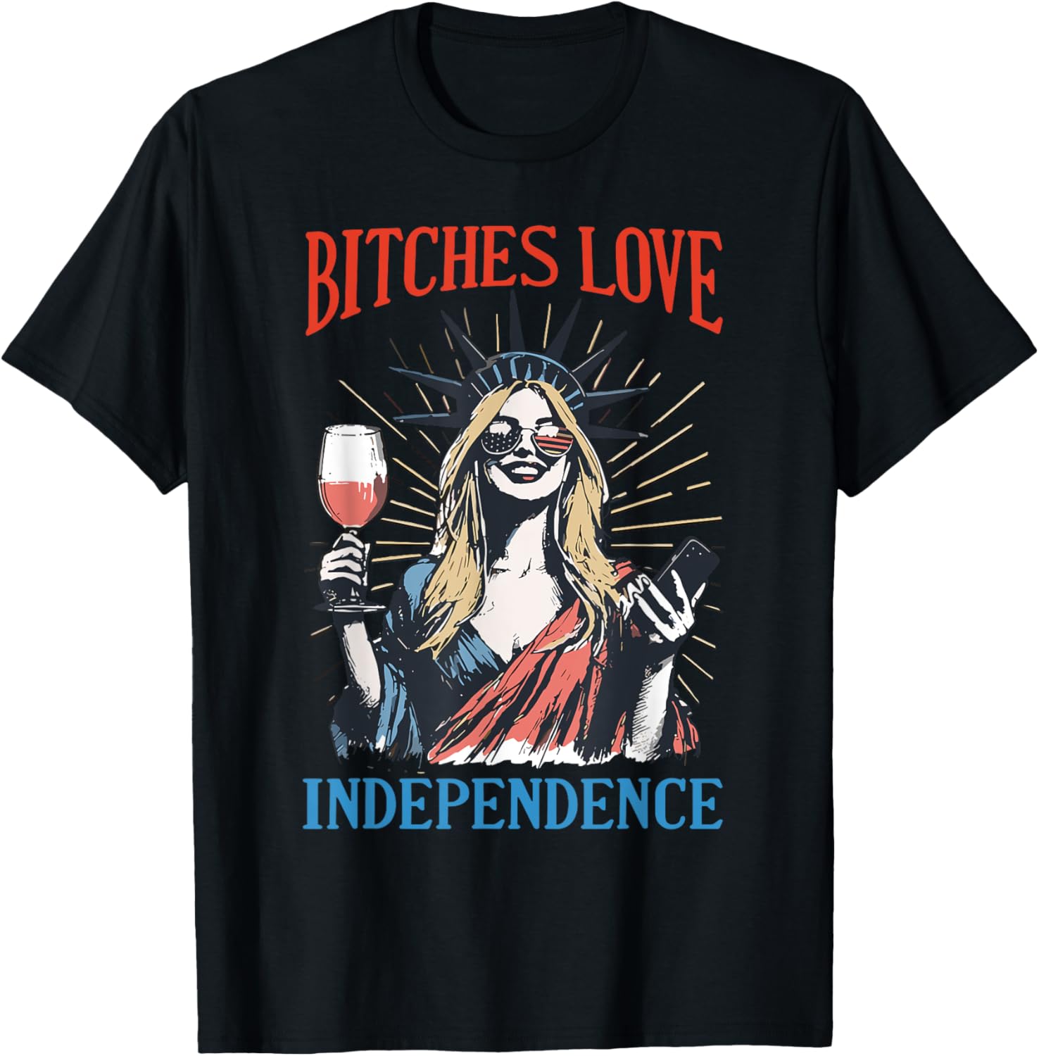 Bitches Love Independence Funny 4th Of July Patriotic Womens T-shirt