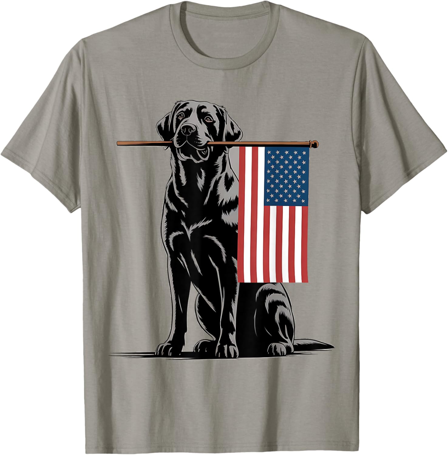 Black Lab Dog Holding July 4th Patriotic USA Flag T-Shirt