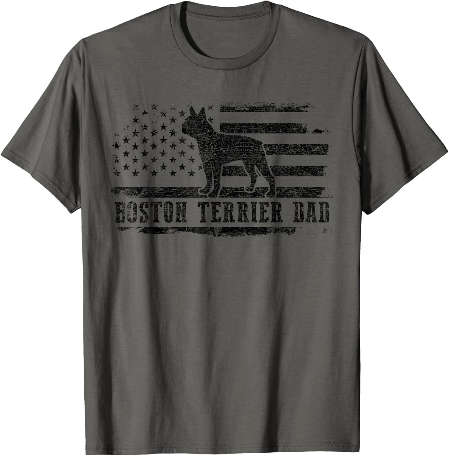 Boston Terrier Dad Distressed American Flag Patriotic Dog T-Shirt