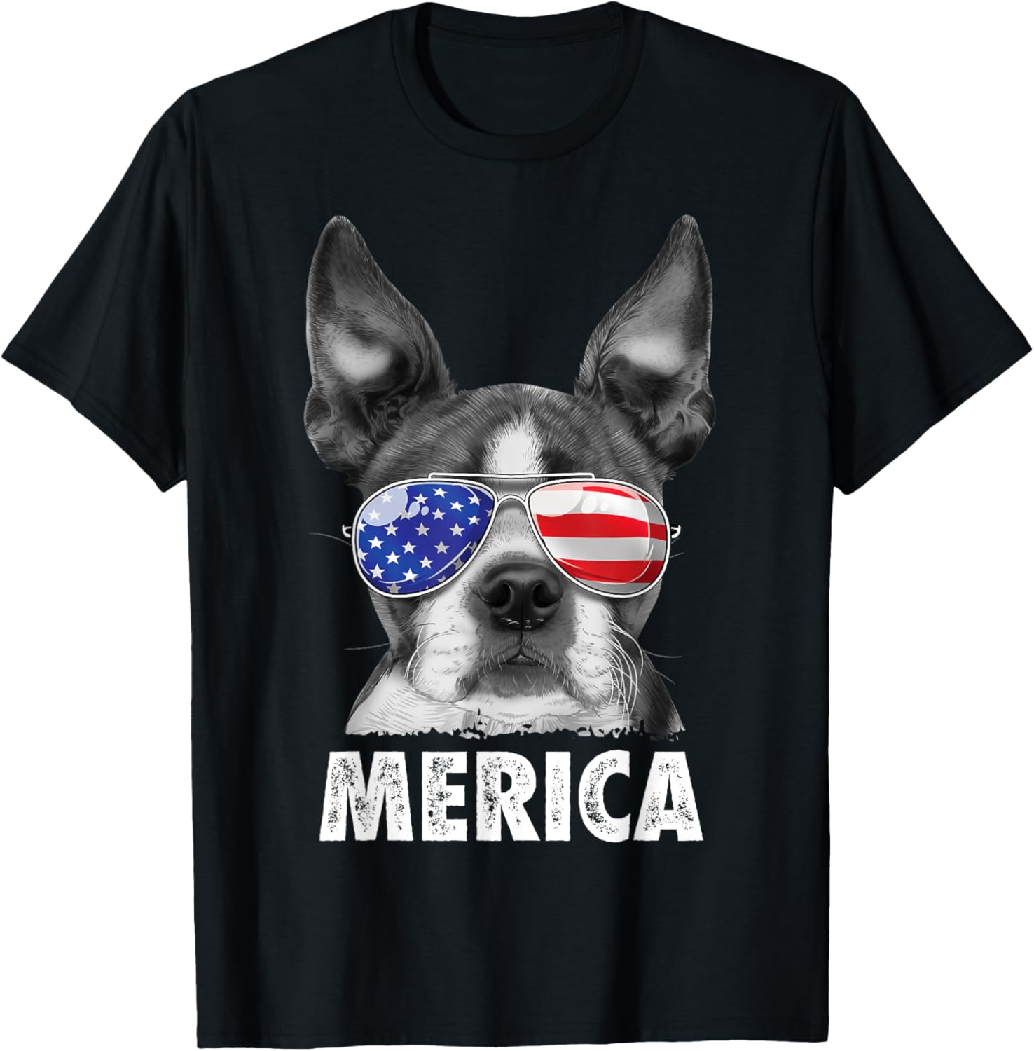 Boston Terrier 4th of July Merica Men Women USA Flag Vintage T-Shirt