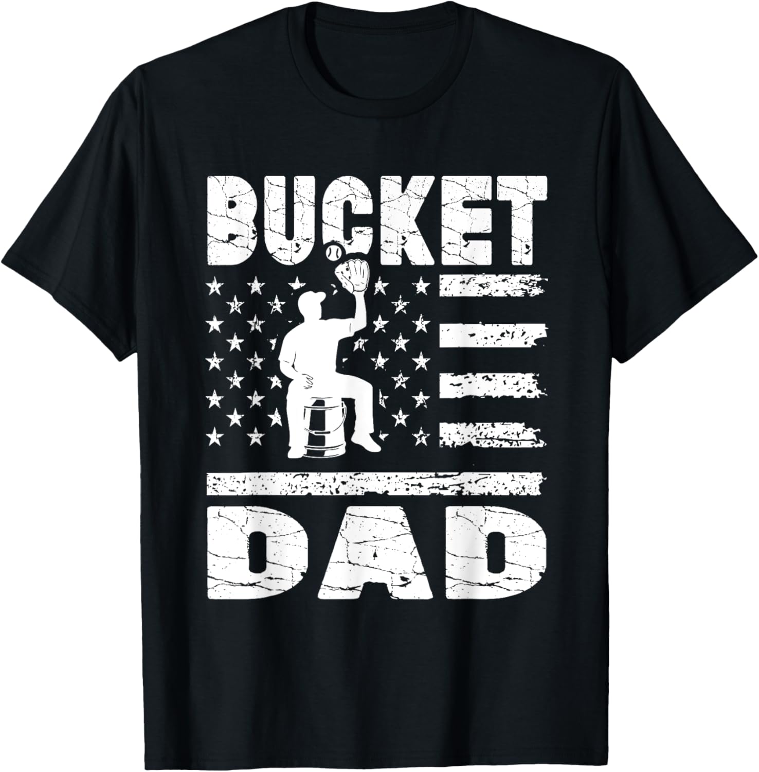 Bucket Dad Baseball Coach Vintage American Flag Father's Day T-Shirt