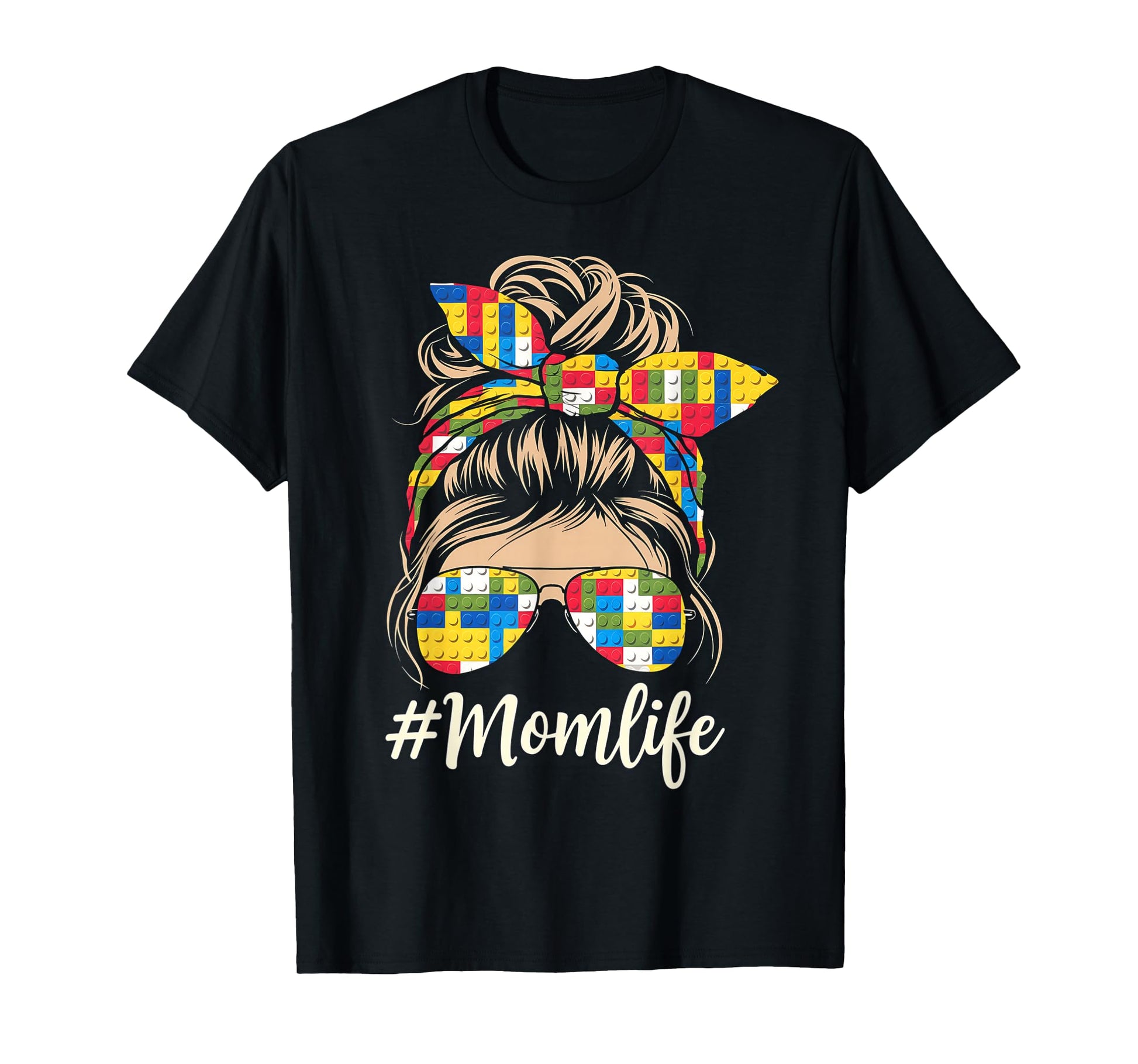 Building Block Messy Bun Mom Life Master Builder Mothers Day T-Shirt