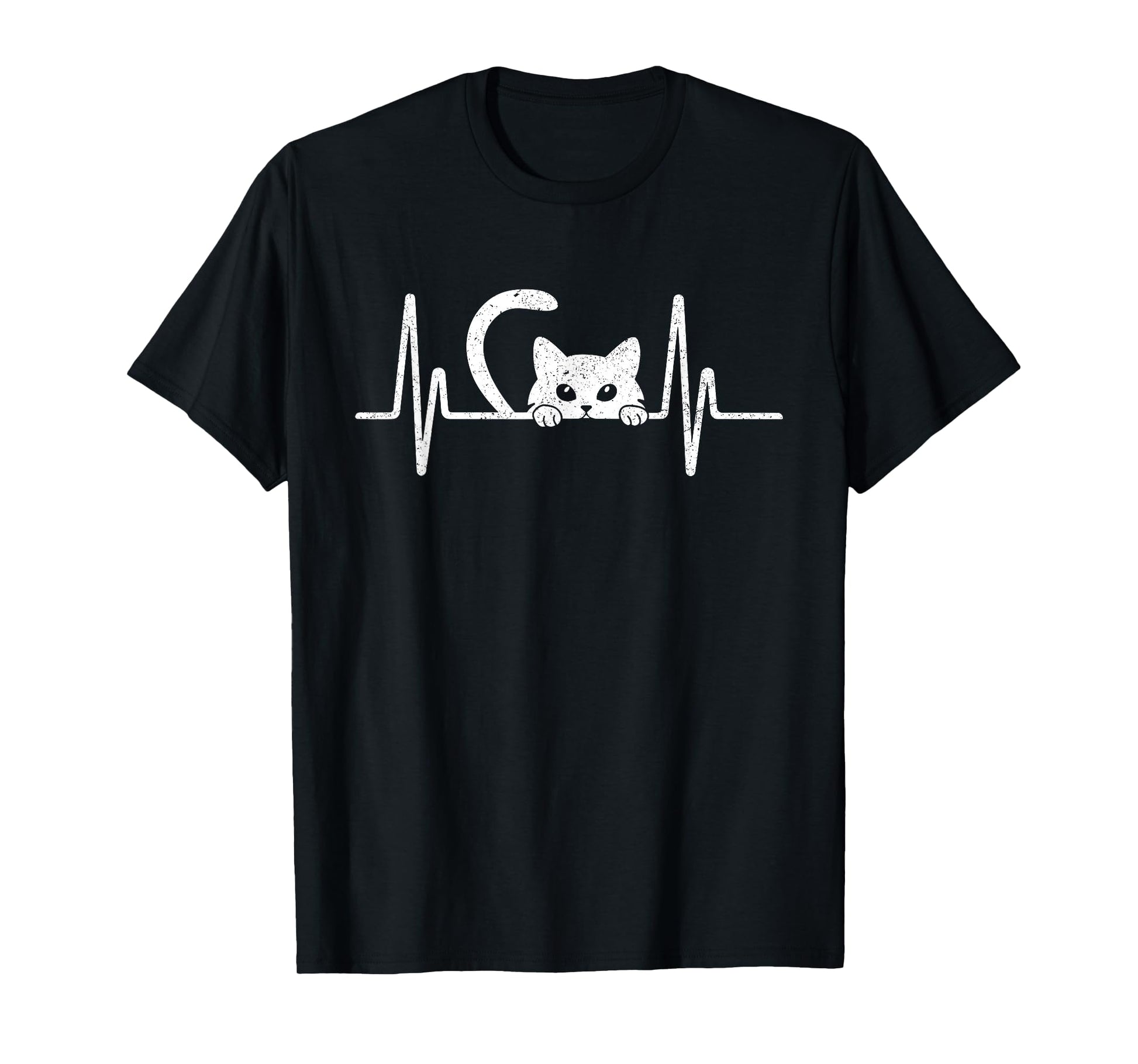 Cat Heartbeat Shirt Cute Kids Men Women Cat Lover Heart Beat T-Shirt