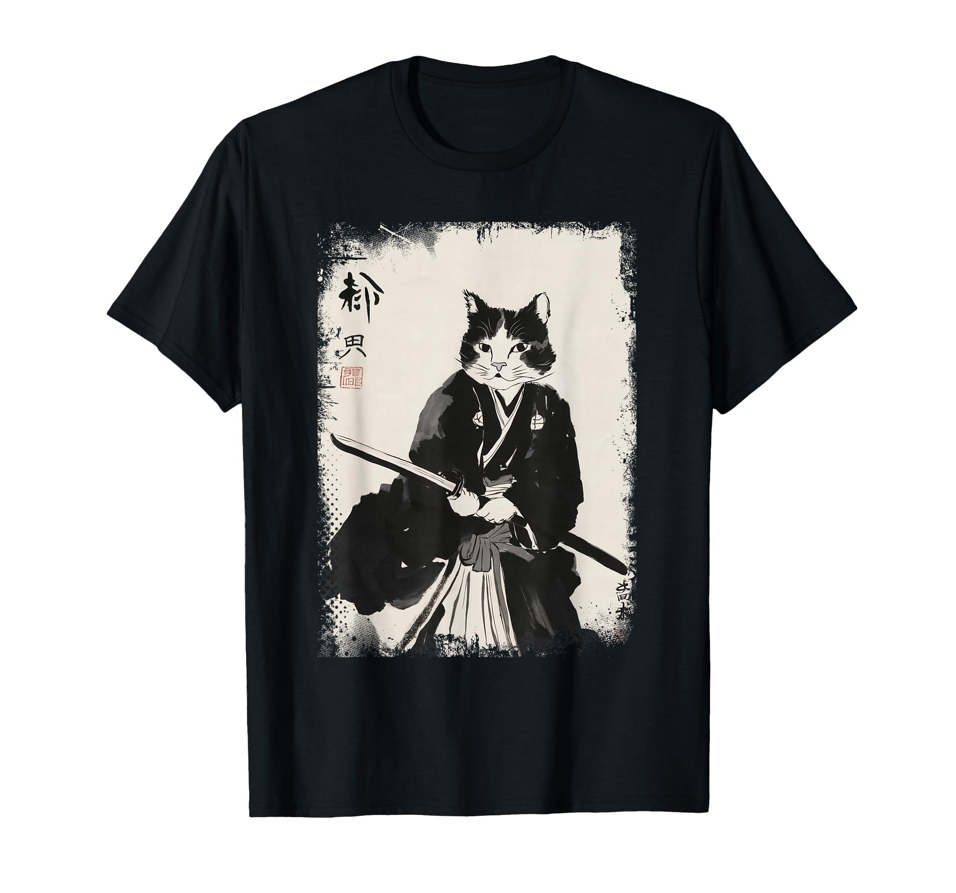 Cat Samurai Warrior Vintage Ukiyo-e Art Japanese Katana T-Shirt