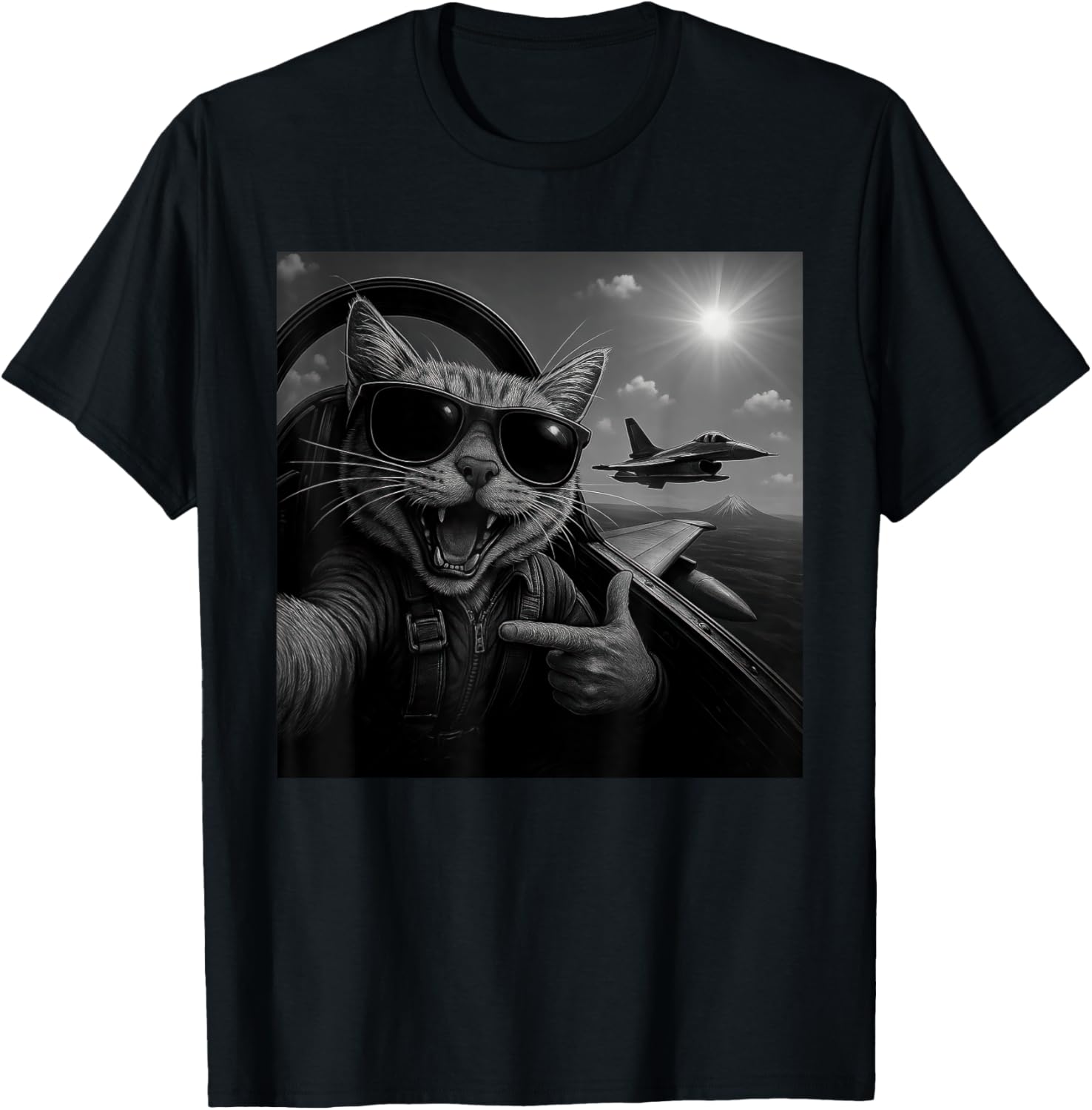 Cat Selfie Jet Airplane Funny Cat Gifts For Men Women Kids T-shirt