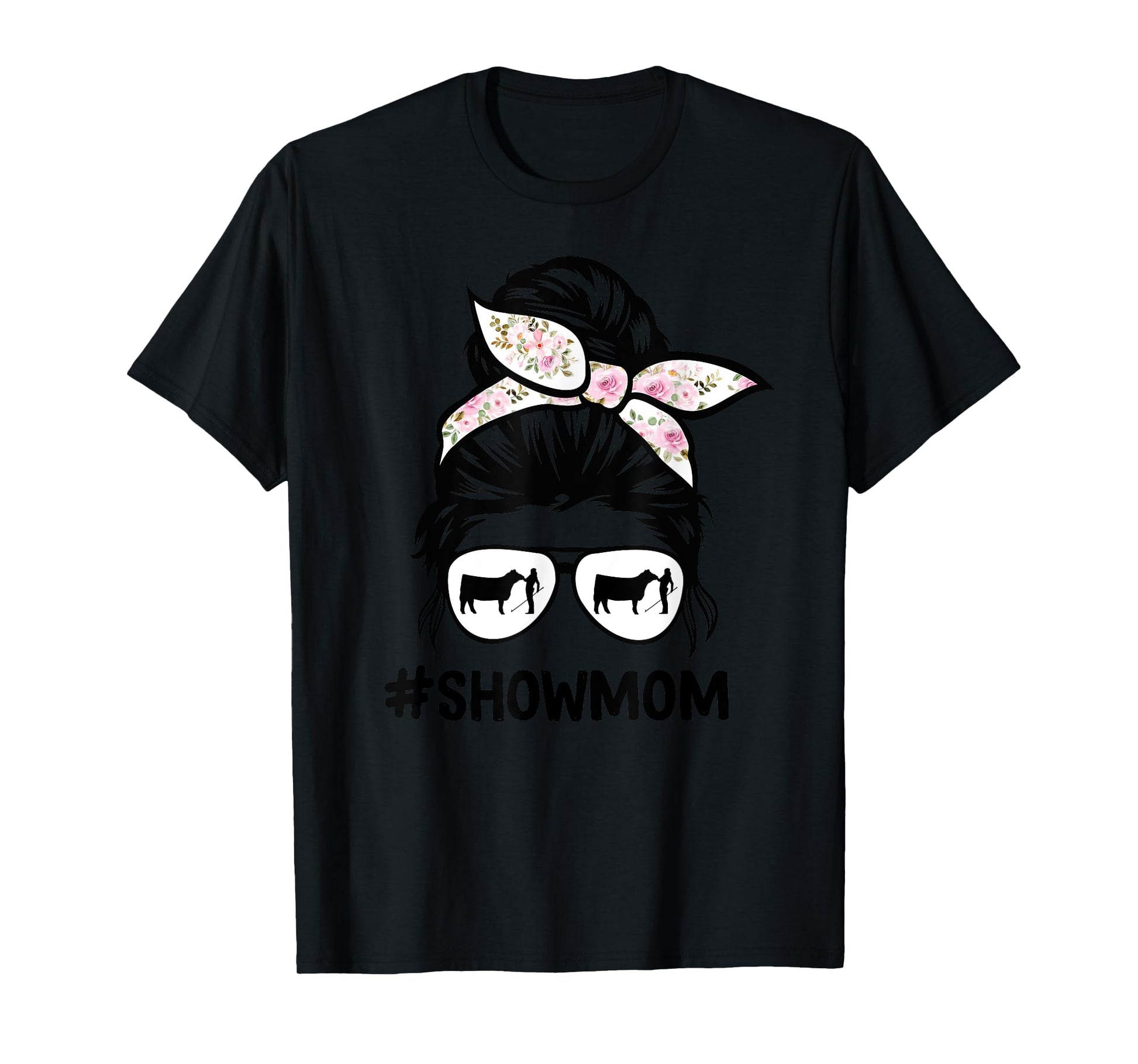 cattle show mom messy bun hair cow show mom T-Shirt