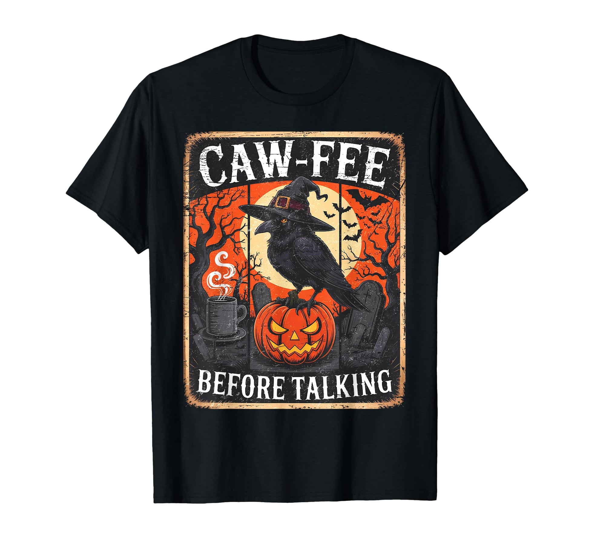 Caw-Fee Before Talking Black Crow Spooky Season Halloween T-Shirt