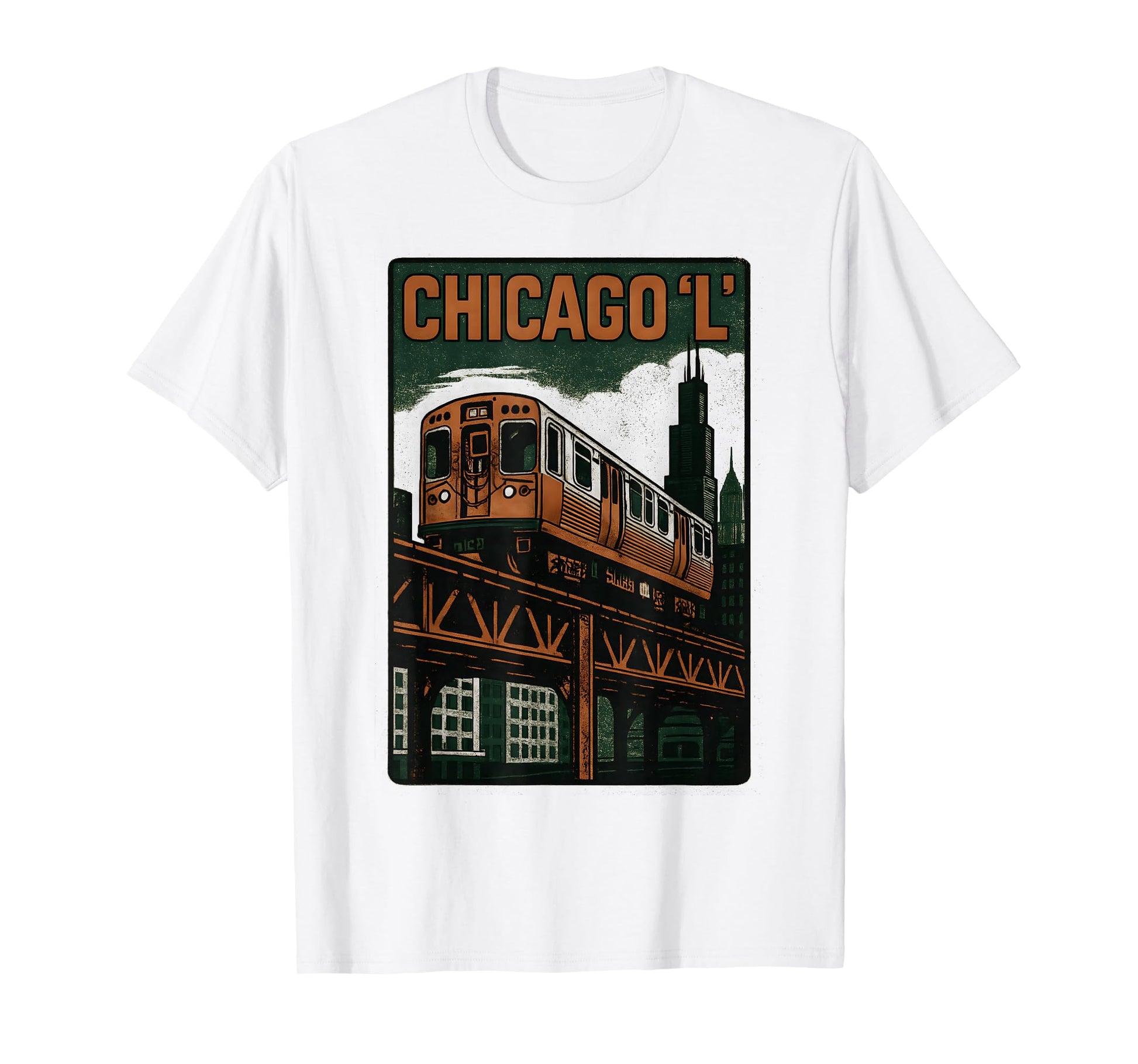 Chicago L Train Retro City Transit Urban Skyline Artwork T-Shirt
