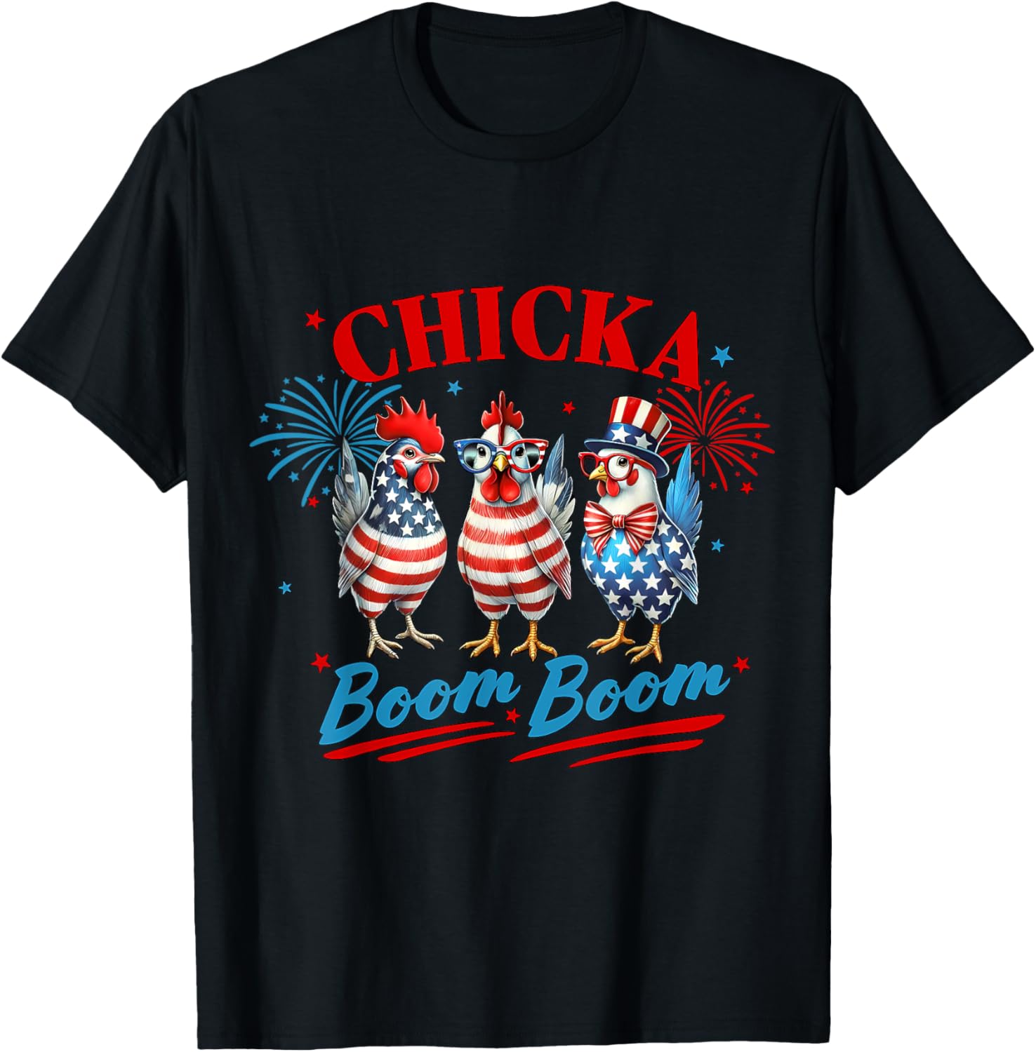 Chicka Boom Boom Funny Patriotic Chicken 4th Of July Usa T-shirt