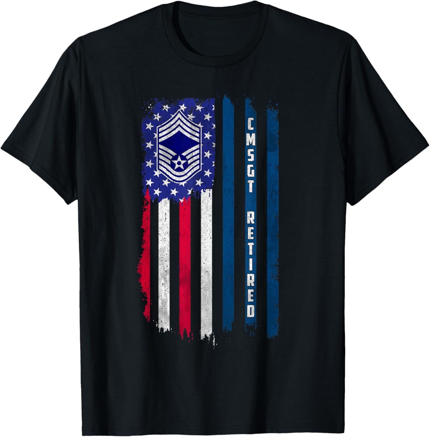 Retired E-9 Chief Master Sergeant CMSgt Rank American Flag T-Shirt