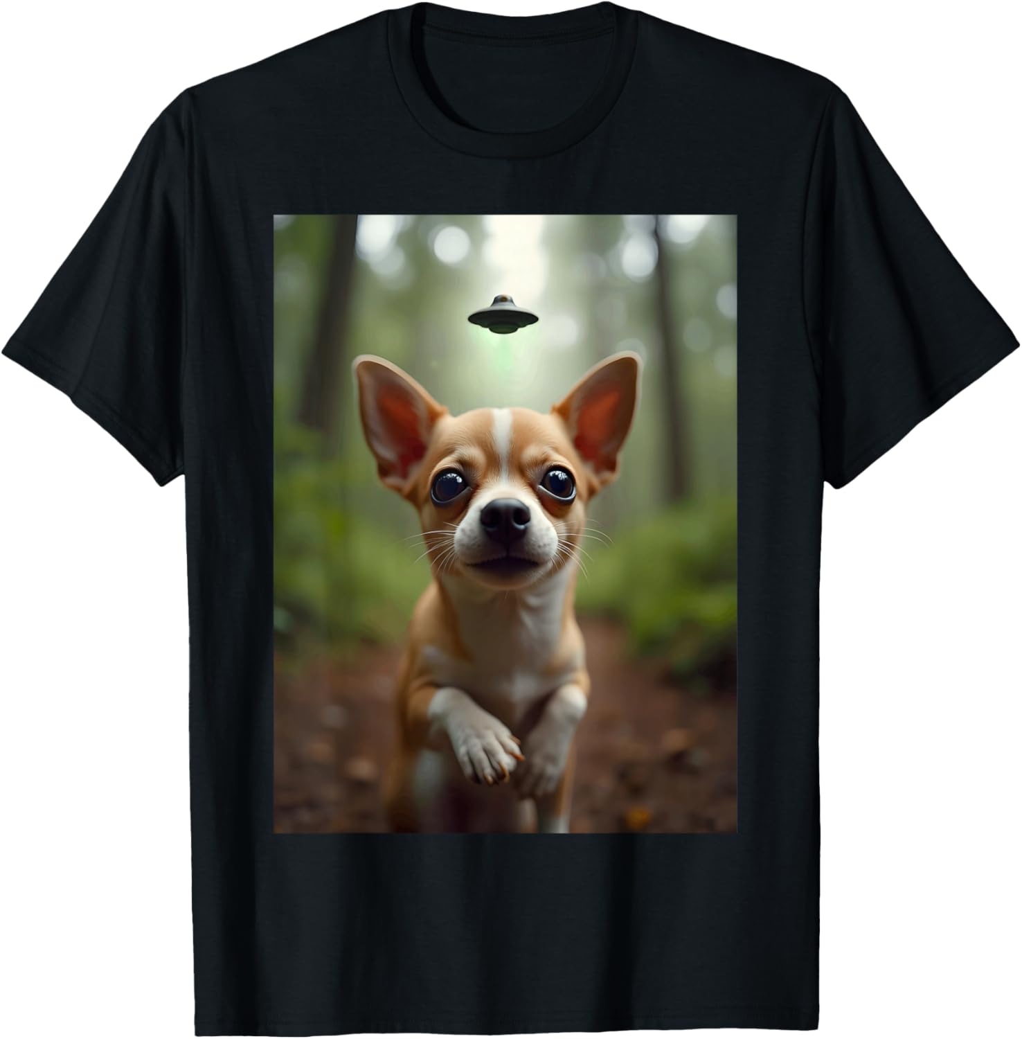 Chihuahua Dog Selfie UFOs Chihuahua Lover Funny UFO Graphic T-Shirt