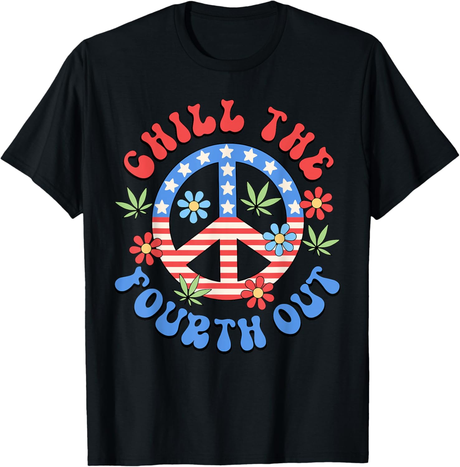 Chill The Fourth Out Cannabis Peace Sign US Flag 4th Of July T-Shirt