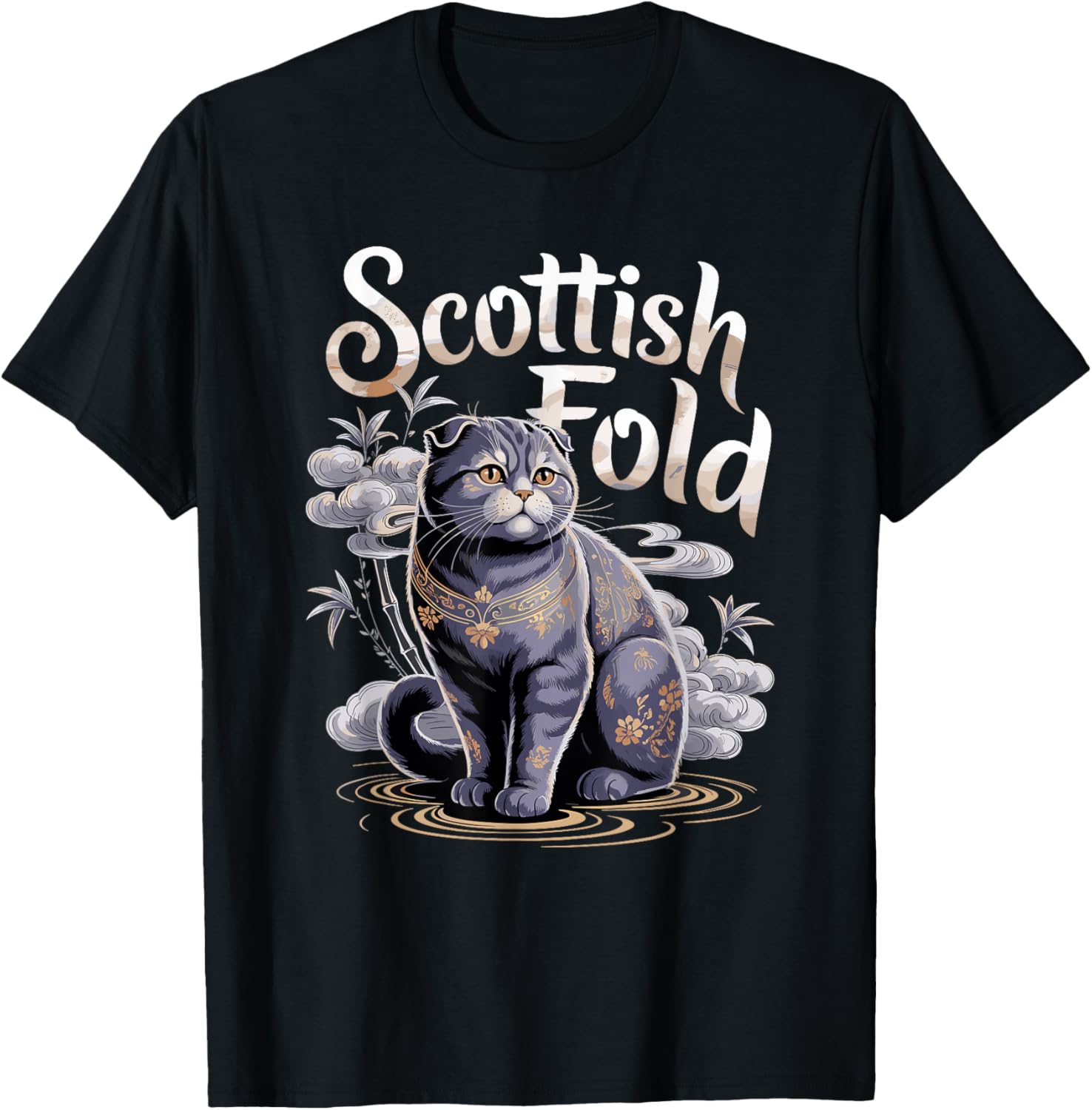 Chinese Traditional Art Scottish Fold Cat Coupari T-Shirt