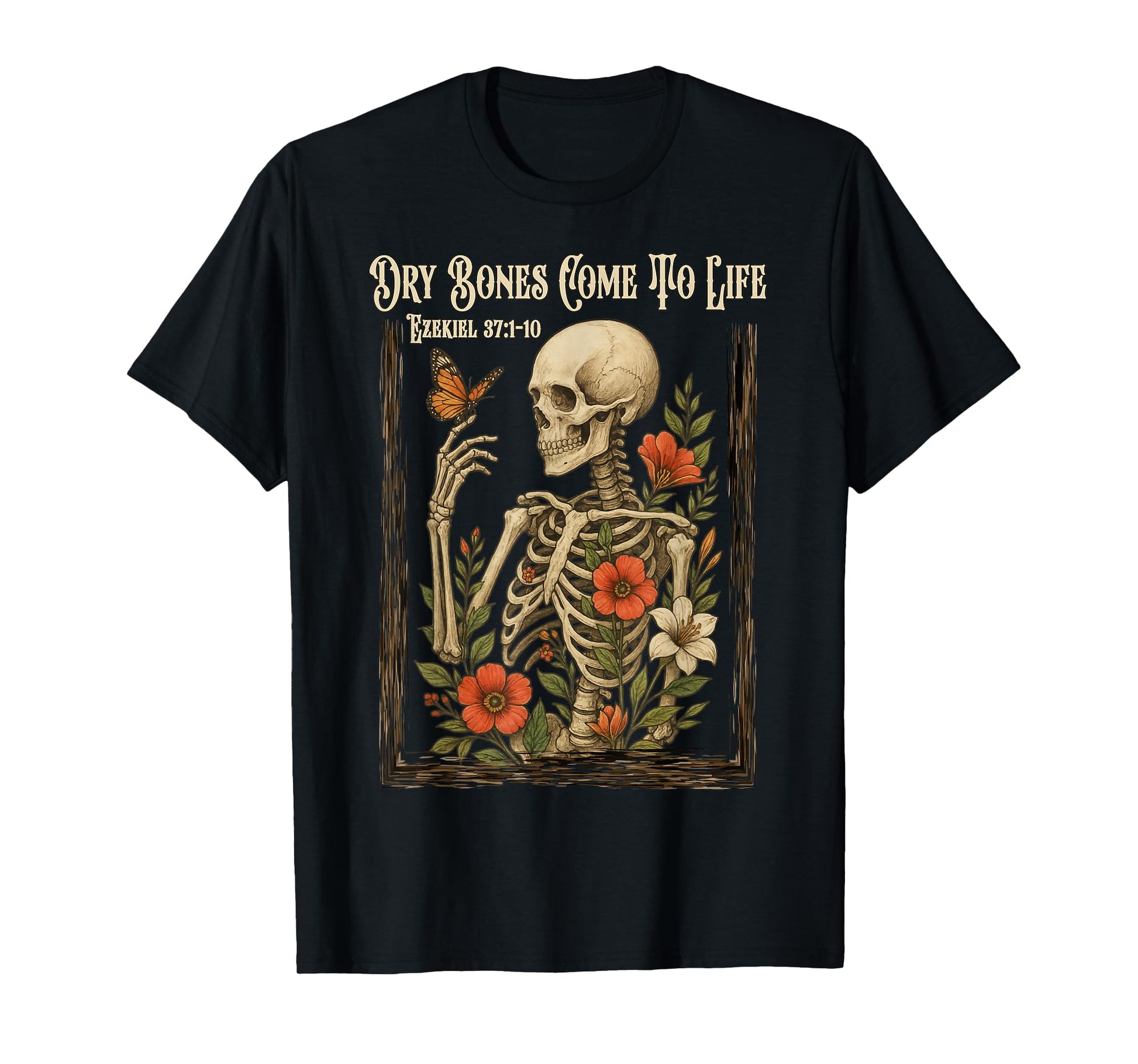 Christian Faith Dry Bones Come to Life Skeleton Floral T-Shirt