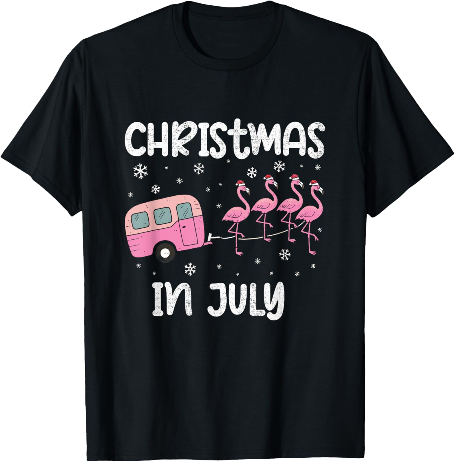 Christmas In July Flamingo Trailer Summer Xmas Camp Camper T-Shirt