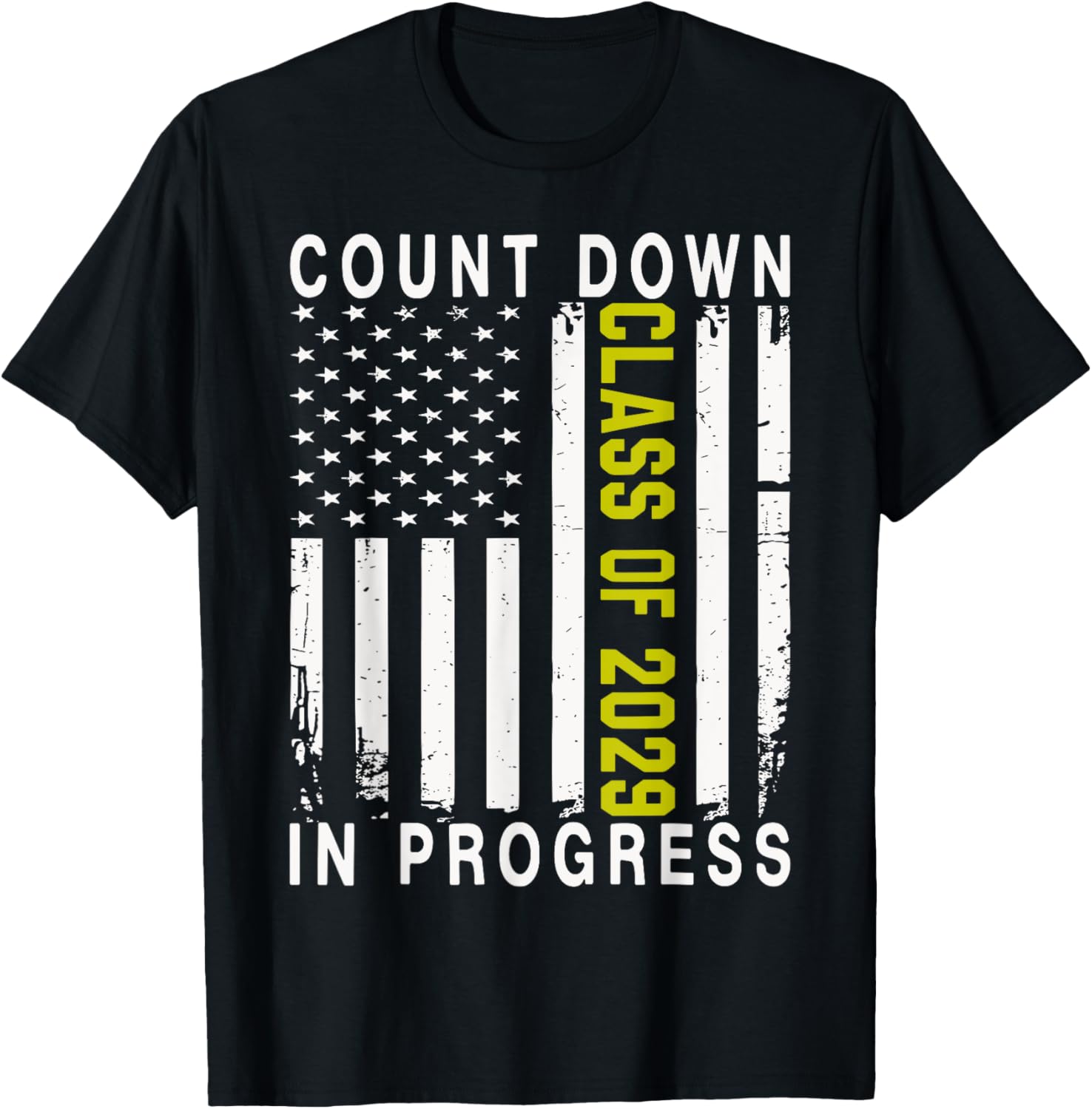 Class Of 2029 Count Down 8th Grade Graduation American Flag T-Shirt